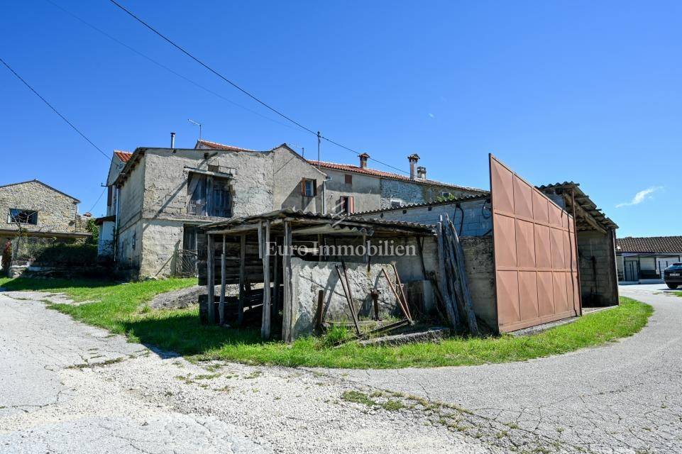 Reihenhaus mit 220 m² Wohnfläche auf einem 490 m² großen Grundstück (zwei Parzellen), gelegen in einem ruhigen Ort bei Buje. Südwest-Ausrichtung sorgt für viel Tageslicht. Das Haus ist vollständig renovierungsbedürftig.