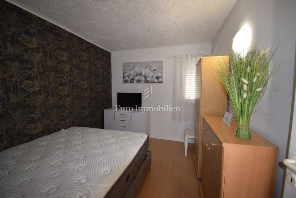 Im Erdgeschoss befinden sich Küche mit Essbereich, Wohnzimmer und Bad. Das erste Obergeschoss verfügt über ein Schlafzimmer und eine Terrasse, das zweite Obergeschoss über ein weiteres Schlafzimmer, während das Dachgeschoss eine Terrasse mit herrlichem Blick auf das Meer von Murter bietet.