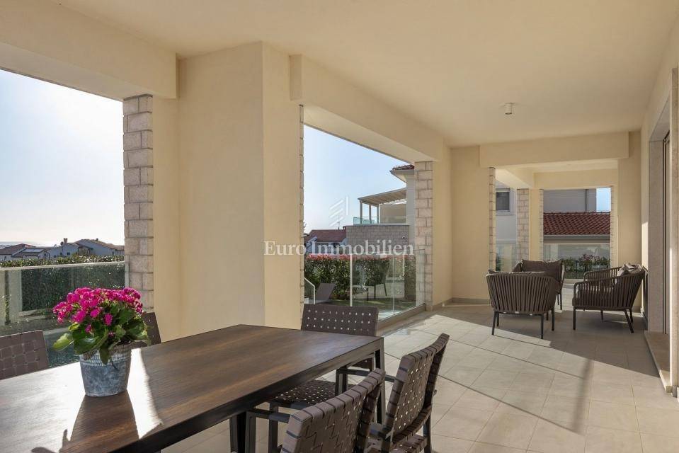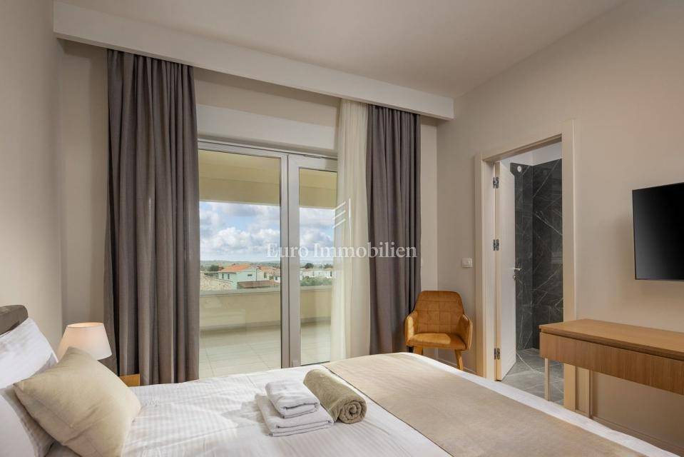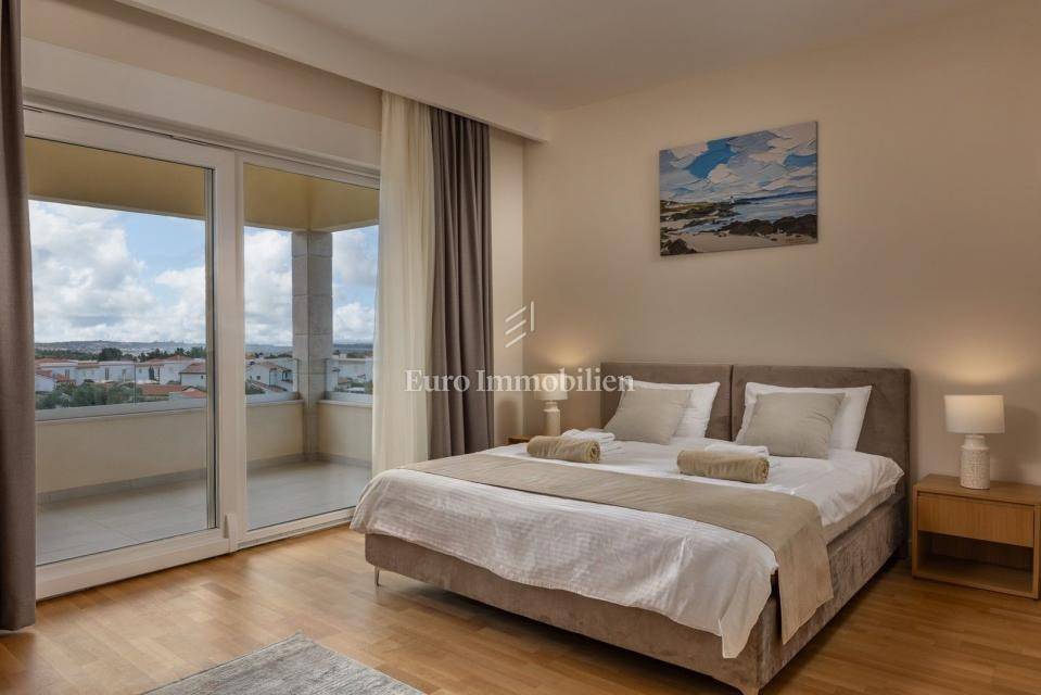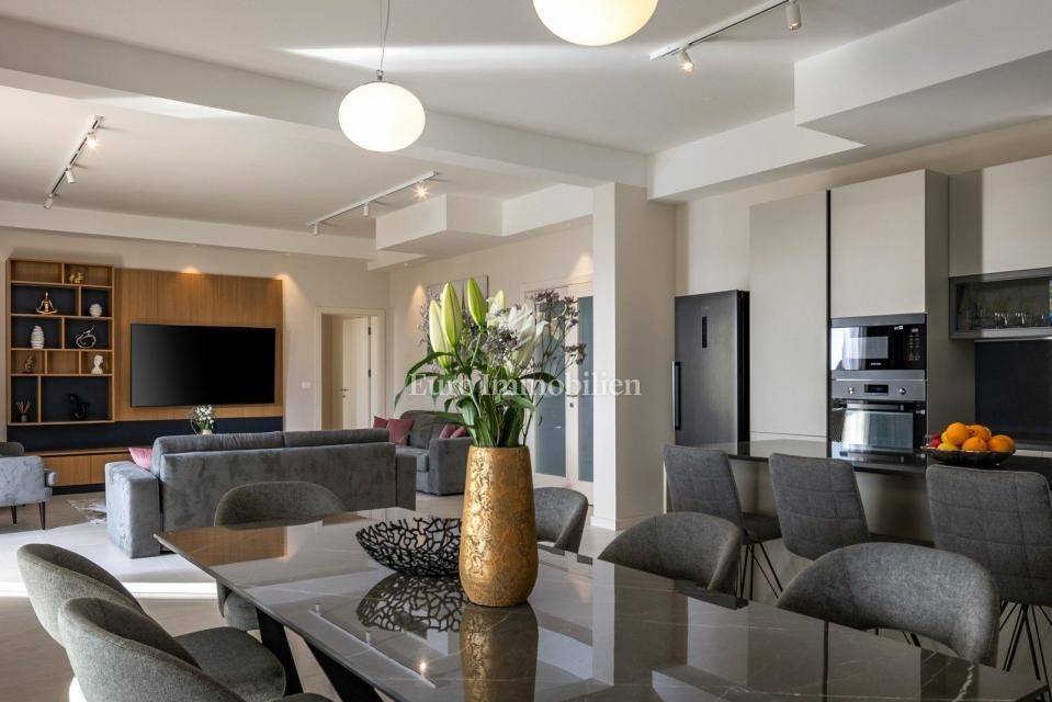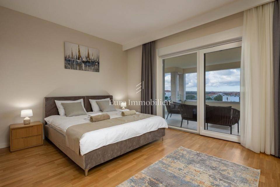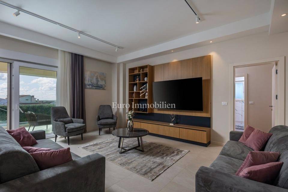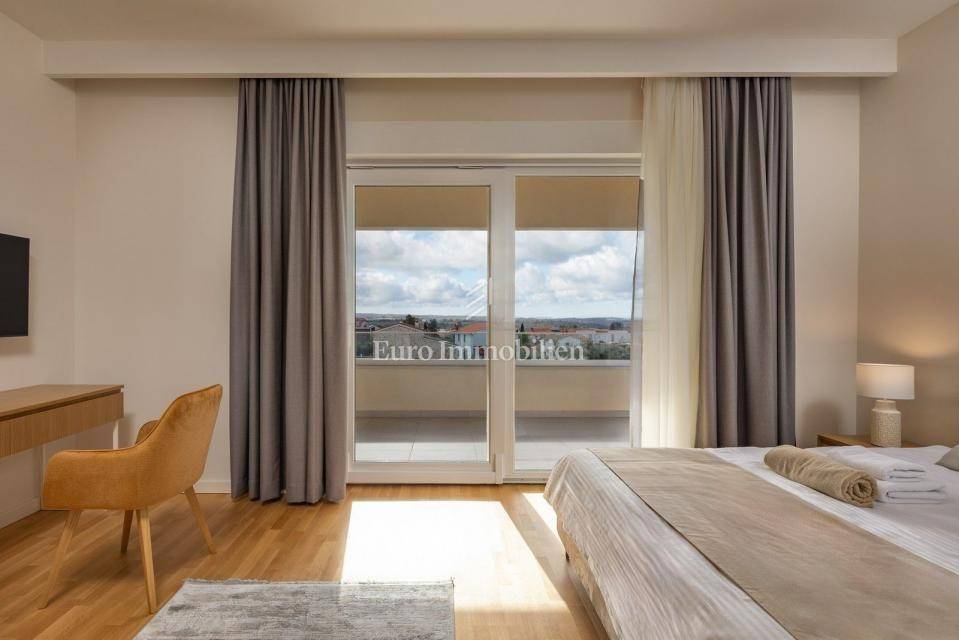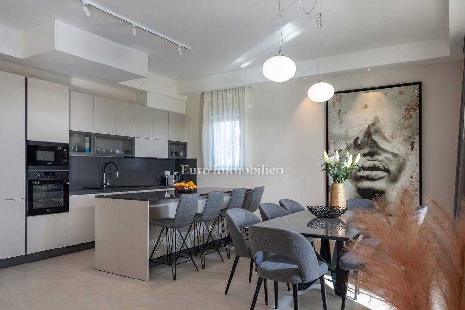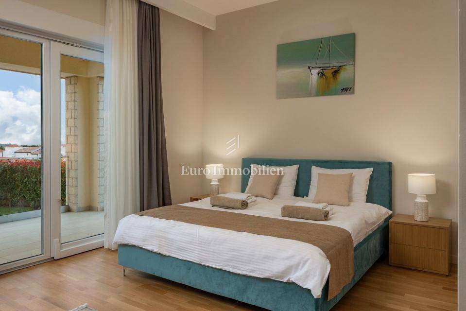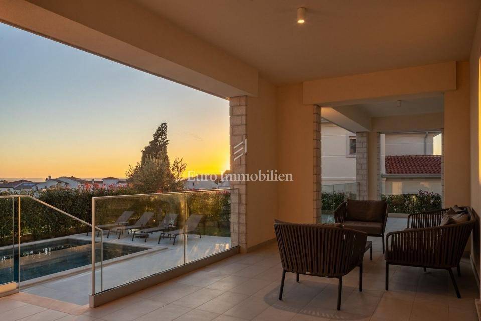 Eine wunderschöne Villa mit authentischem Aussehen, gelegen in ruhiger Lage in einer kleinen istrischen Stadt, nicht weit vom Meer (1 km). Mit seiner Eleganz und Architektur verströmt es ein wenig venezianischen Stil. Es wurde im Jahr 2022 gebaut. Es besteht aus drei Etagen: Keller, Erdgeschoss und erster Stock. Im Untergeschoss befinden sich eine Garage für zwei Autos, der Maschinenraum des Hauses, eine Waschküche und ein Weinkeller. Eine Innentreppe führt in den ersten Stock, wo sich ein geräumiger Wohnbereich (Esszimmer, Küche und Wohnzimmer), Flur, Toilette und ein Schlafzimmer mit eigenem Bad befinden. Der Wohnbereich führt zu einer großen überdachten Terrasse, dem Swimmingpool und dem Garten. Im Obergeschoss befinden sich drei weitere Schlafzimmer, jeweils mit eigenem Bad und einem Balkon mit Panoramablick auf das Meer. Die Heizung erfolgt über Fußbodenheizung, die Heizung/Kühlung wird über Klimaanlagen geregelt. Der Hof ist eingezäunt, ein Teil des Gartens ist mit mediterranen Pflanzen und Rasen geschmückt und der andere Teil ist für drei Parkplätze vorgesehen. Im Garten befindet sich außerdem ein großer Swimmingpool (45 m2). Die Villa vermittelt mit ihren hohen Decken und der Einrichtung sowie weiteren Innen- und Außendetails einen Hauch von Luxus. Daher ist es eine ausgezeichnete Wahl für alle, die eine authentische Immobilie in Meeresnähe für den Eigenbedarf oder als Investition für die touristische Vermietung suchen.