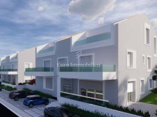 Wohnung im Erdgeschoss eines Neubaus mit 6 Wohneinheiten. Die Wohnung besteht aus zwei Schlafzimmern, einem Badezimmer, einer separaten Toilette, einer Waschküche, einem Abstellraum, einer Küche mit Esszimmer und einem Wohnzimmer mit Zugang zu einer geräumigen Terrasse mit Blick auf das Meer und den Garten. Die Wohnungen werden mit Klimaanlage (3 Innengeräte), Fußbodenheizung (Küche, WC und Bad) ausgestattet und verfügen über einen Parkplatz im Garten. Der Eingang des Gebäudes wird mit einer Videoüberwachung ausgestattet. Die Fertigstellung des Baus ist für Anfang 2026 geplant, der Bezug ist für das Frühjahr desselben Jahres geplant. Der Käufer zahlt keine 3% Grundsteuer.