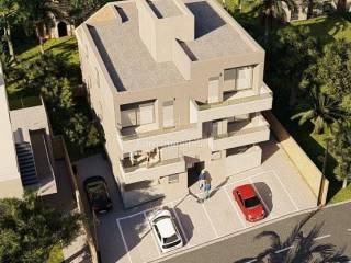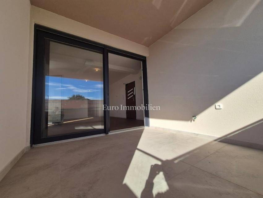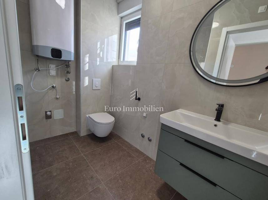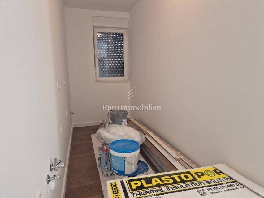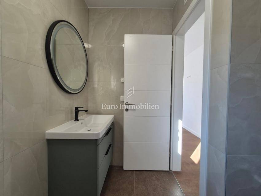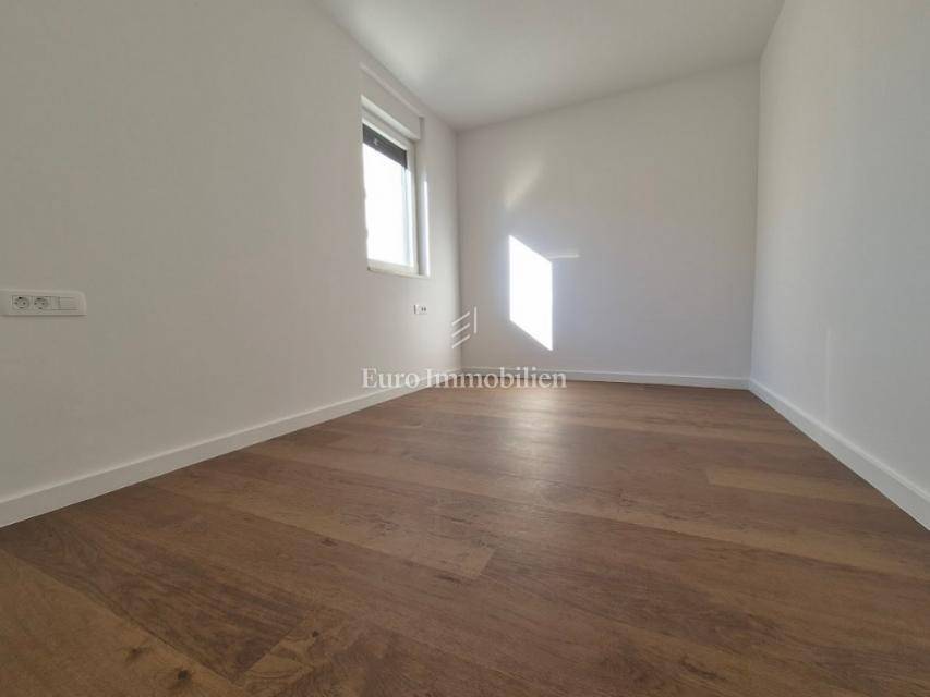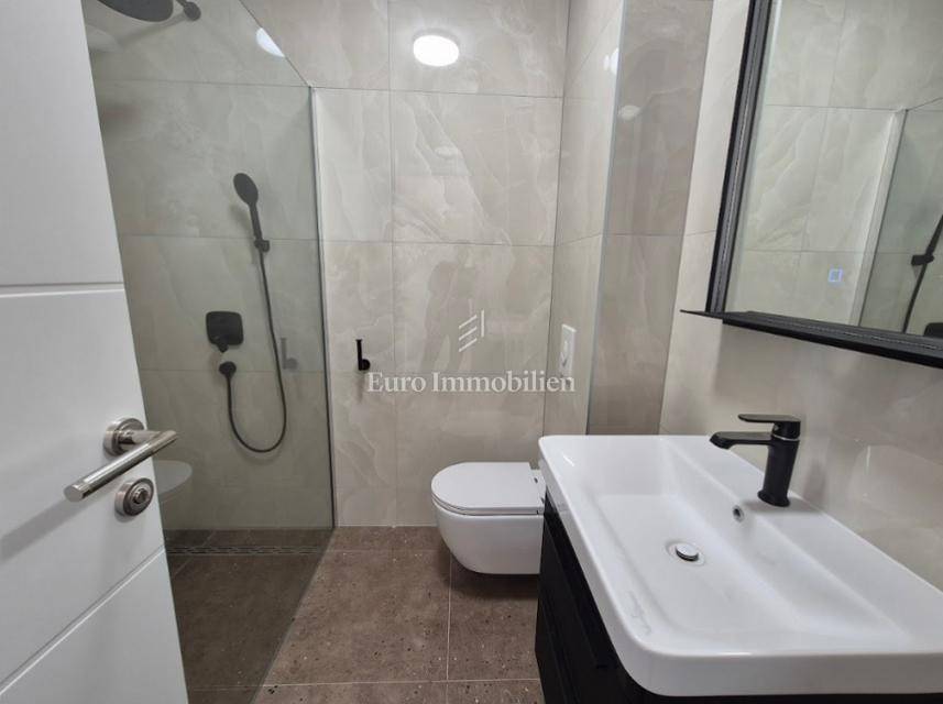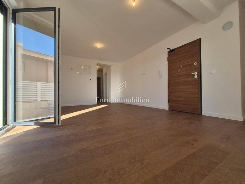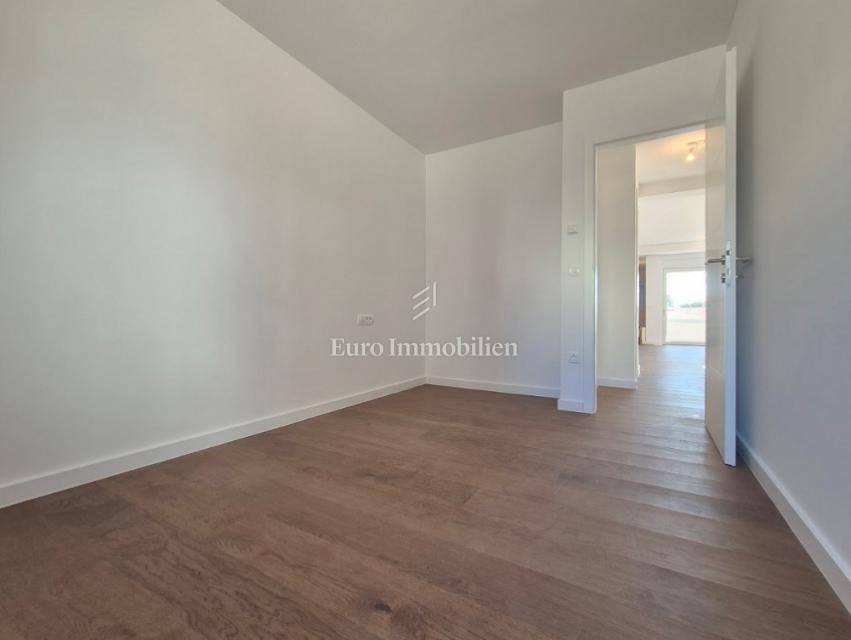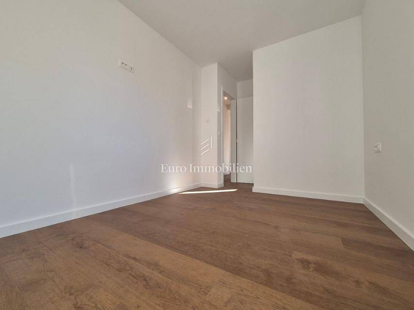 Die Wohnung besteht aus einem Eingangsbereich, einem Wohnzimmer mit Küche und Essbereich, zwei Schlafzimmern, zwei Badezimmern, einer Loggia, einem Abstellraum und einem Innenhof mit Außendusche. Beim Bau wurden ausschließlich hochwertige Materialien verwendet.