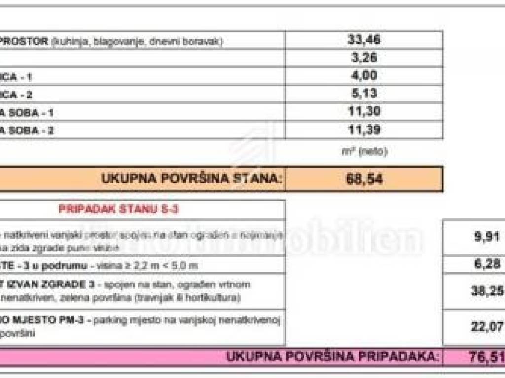 Insel Pag, Mandre – Eine Dreizimmerwohnung (S3) mit einer Gesamtfläche von 87,35 m² steht im Erdgeschoss eines modernen Mehrfamilienhauses zum Verkauf.