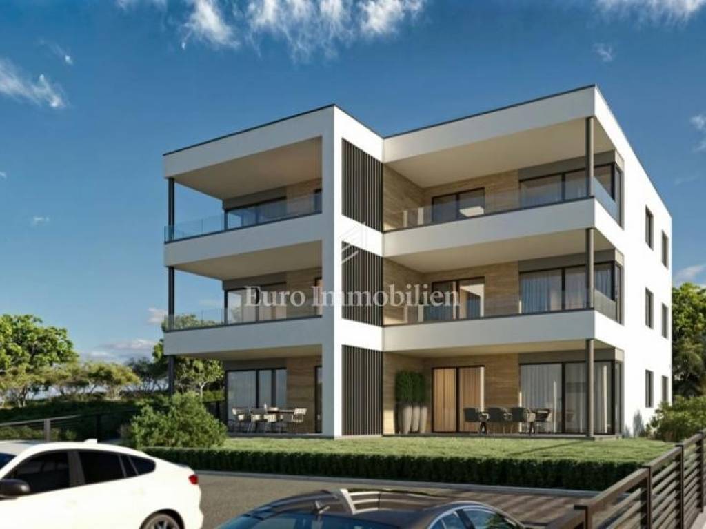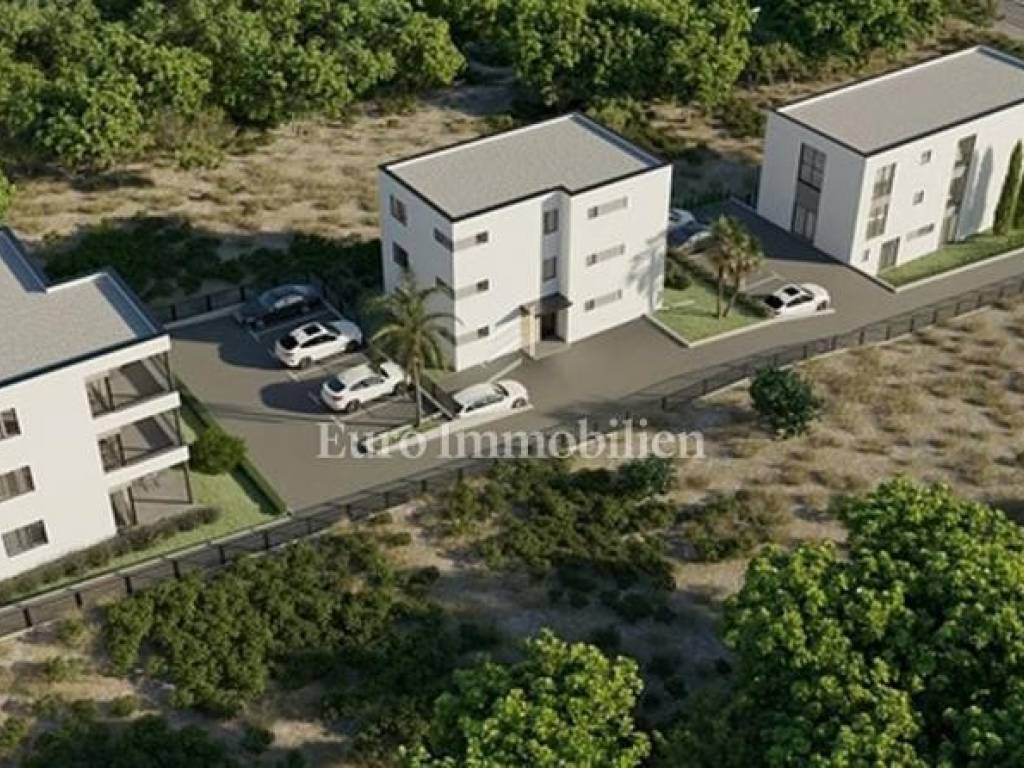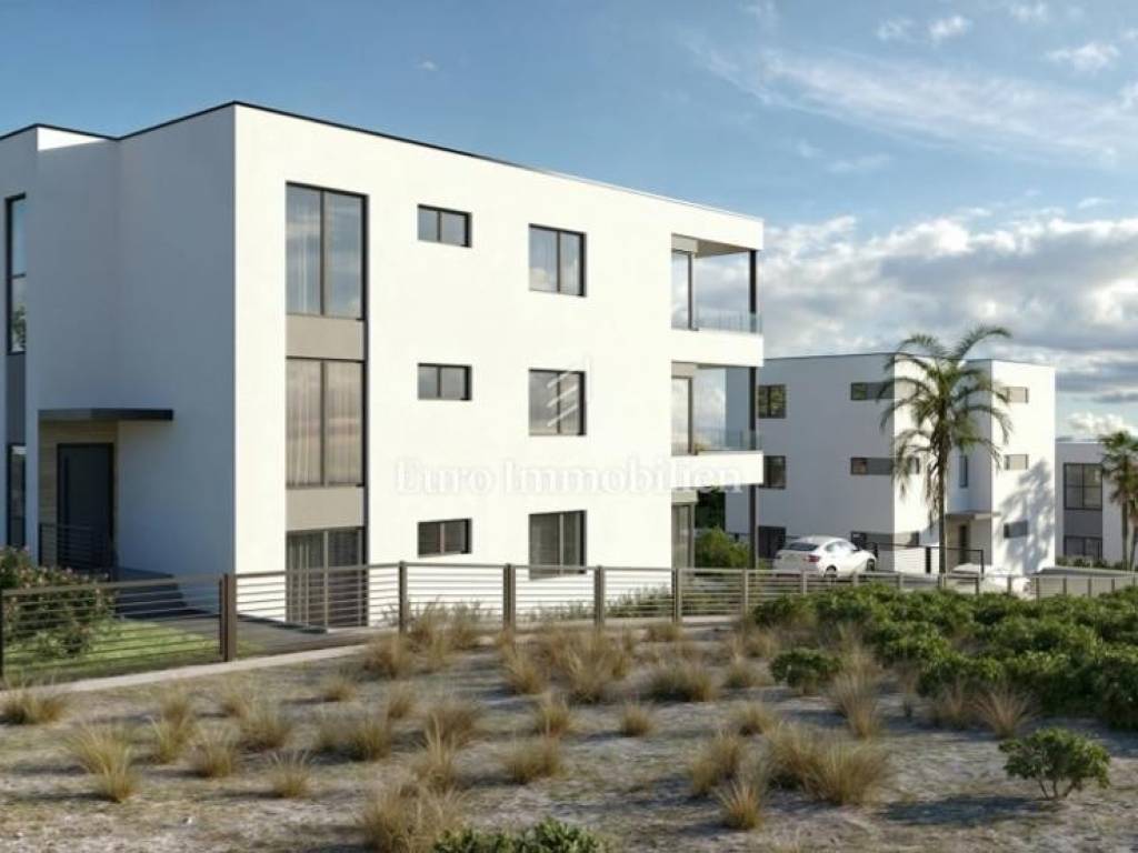 Mandre, Insel Pag – Zum Verkauf steht eine Dreizimmerwohnung (S1) mit Garten, mit einer gesamten berechneten Fläche von 84,85 m², in einem exklusiven Neubau, nur 200 Meter vom Meer und der Lungo-Mare-Promenade entfernt.