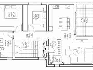 Mandre, Insel Pag – Zum Verkauf steht ein Dreizimmer-Penthouse (S3) mit einer Fläche von 83,60 m² in einem exklusiven Neubau mit Meerblick, nur 200 Meter vom Meer und der Lungo-Mare-Promenade entfernt.