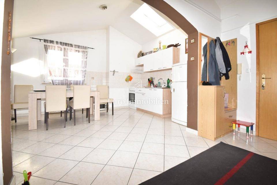 Poreč – Die Wohnung befindet sich im hohen Dachgeschoss eines im Jahr 2000 erbauten Gebäudes.