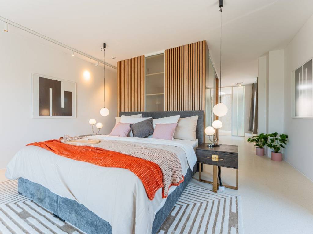 Die Villa verfügt über ca. 400 m Wohnfläche auf einem ca. 1.530 m großen Grundstück. Im Obergeschoss befindet sich ein Schlafbereich mit drei Schlafzimmern. Das Hauptschlafzimmer verfügt über ein eigenes Bad und einen Ankleideraum. Eines der Schlafzimmer kann aufgrund seiner Größe und Aufteilung in zwei kleinere Wohneinheiten unterteilt werden, die sich ein Bad teilen. Dadurch ergeben sich insgesamt vier Schlafzimmer.