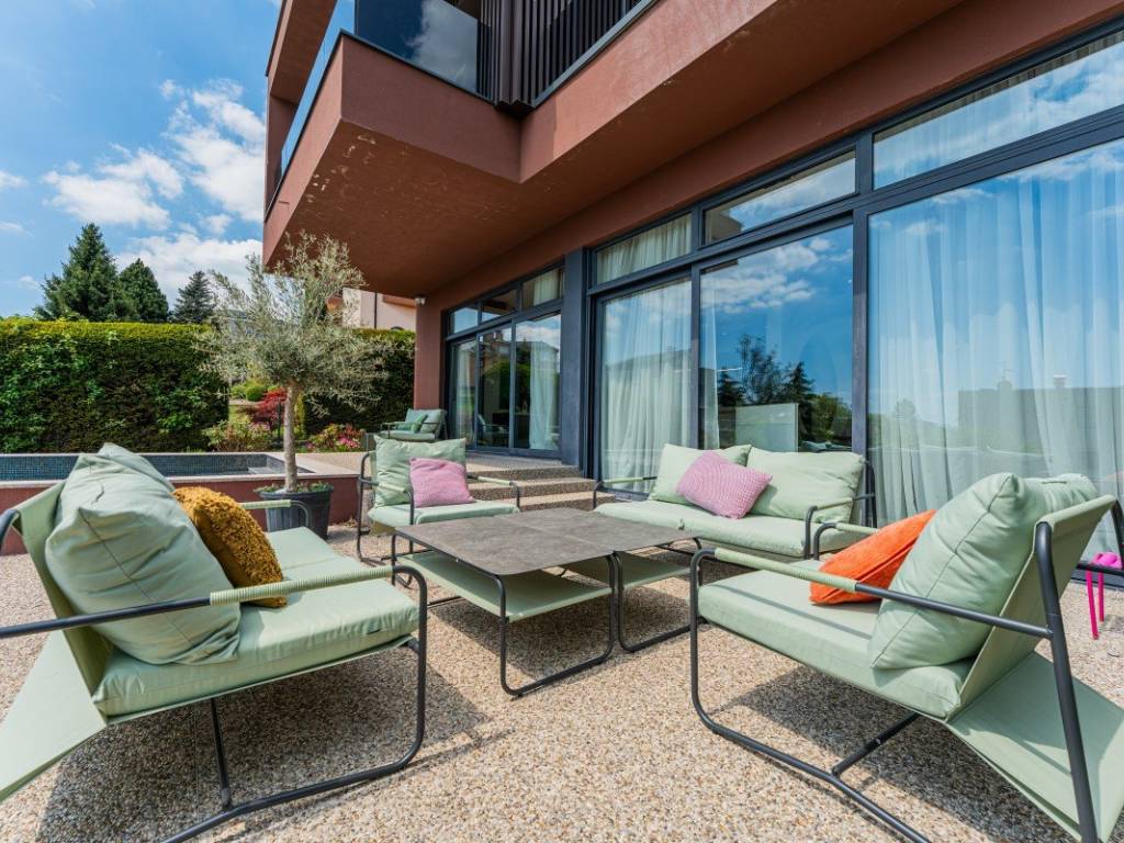 Der Garten ist landschaftlich gestaltet und umfasst einen Swimmingpool, eine Liegewiese und mehrere Terrassen, die zu einem angenehmen Aufenthalt im Freien einladen.