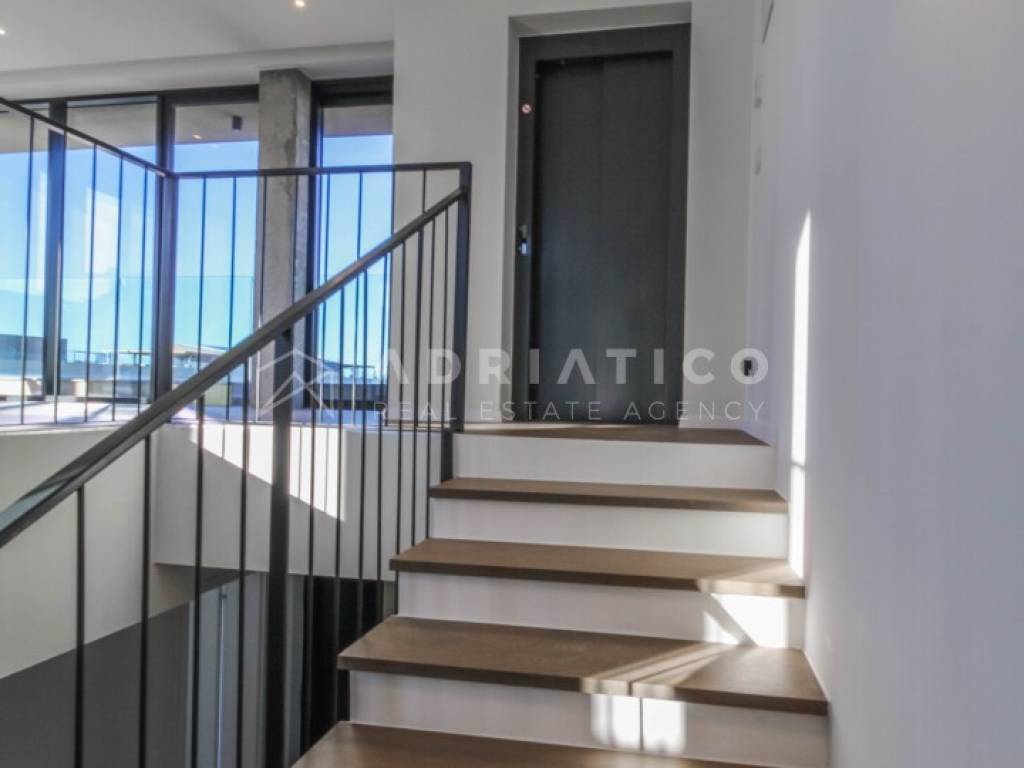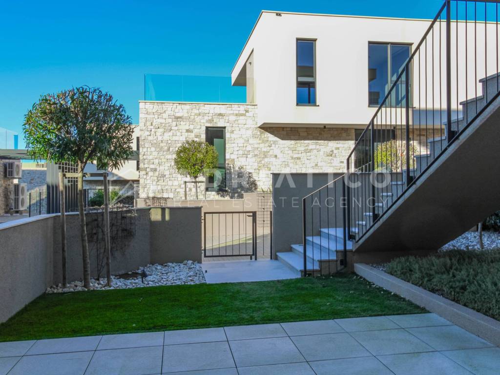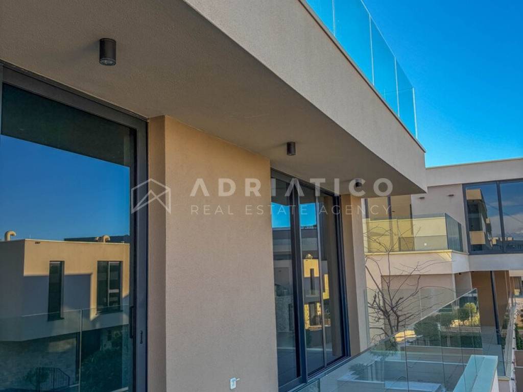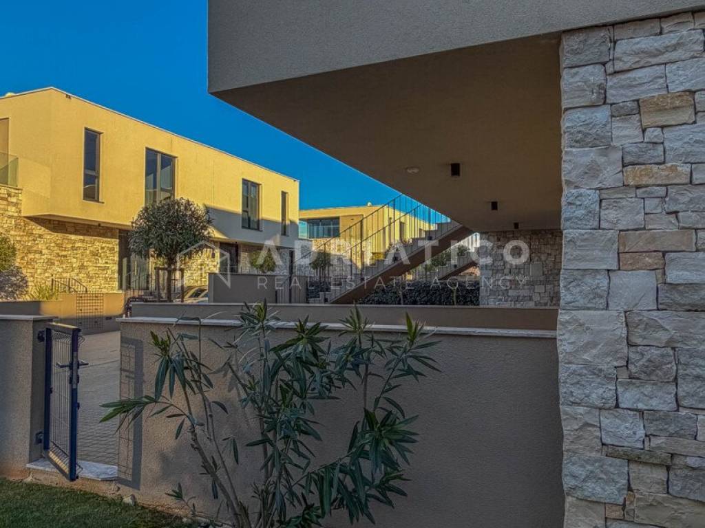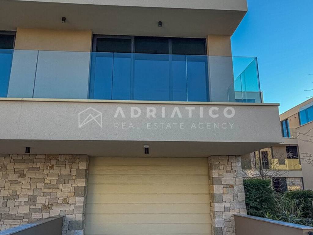 Zum Verkauf steht eine exklusive Doppelhaushälfte im Petram Resort an der Westküste Istriens. Der Direktkauf vom Eigentümer ermöglicht einen besonders attraktiven Preis. Das Haus erstreckt sich über mehrere funktional gestaltete Etagen, die durch einen privaten Aufzug verbunden sind und höchsten Komfort bieten. Das architektonische Konzept setzt auf Helligkeit, Großzügigkeit und einen offenen, unverbaubaren Meerblick. Die Immobilie verfügt über drei Schlafzimmer, drei Badezimmer sowie ein Gäste-WC. Der Wohnbereich bildet das Zentrum des Hauses mit direktem Blick auf das Meer und den Außenbereich. Hochwertige Ausstattung und moderne Bauweise erfüllen höchste Ansprüche. Eine Garage und insgesamt drei Stellplätze sorgen für zusätzlichen Komfort, besonders in der Saison. 24-Stunden-Sicherheitsdienst im Resort garantiert maximale Sicherheit. Beim Kauf durch eine Privatperson fällt die gesetzliche Mehrwertsteuer an. Diese luxuriöse Doppelhaushälfte mit Aufzug, Garage, drei Stellplätzen und Meerblick ist eine hervorragende Gelegenheit auf dem istrischen Immobilienmarkt.