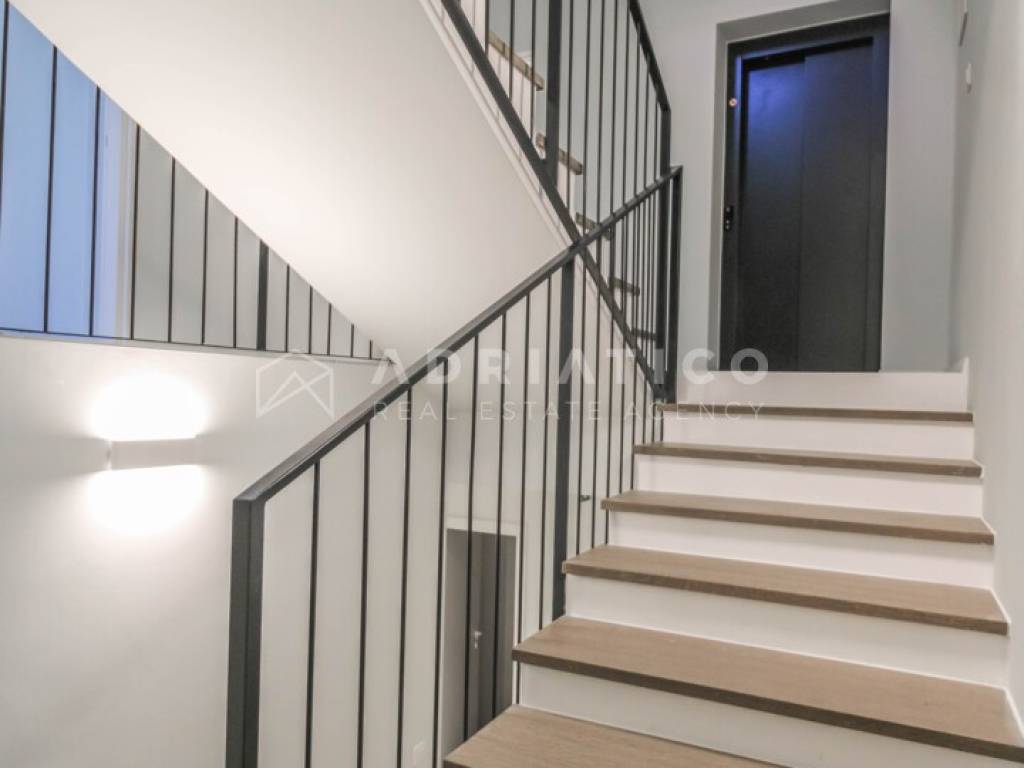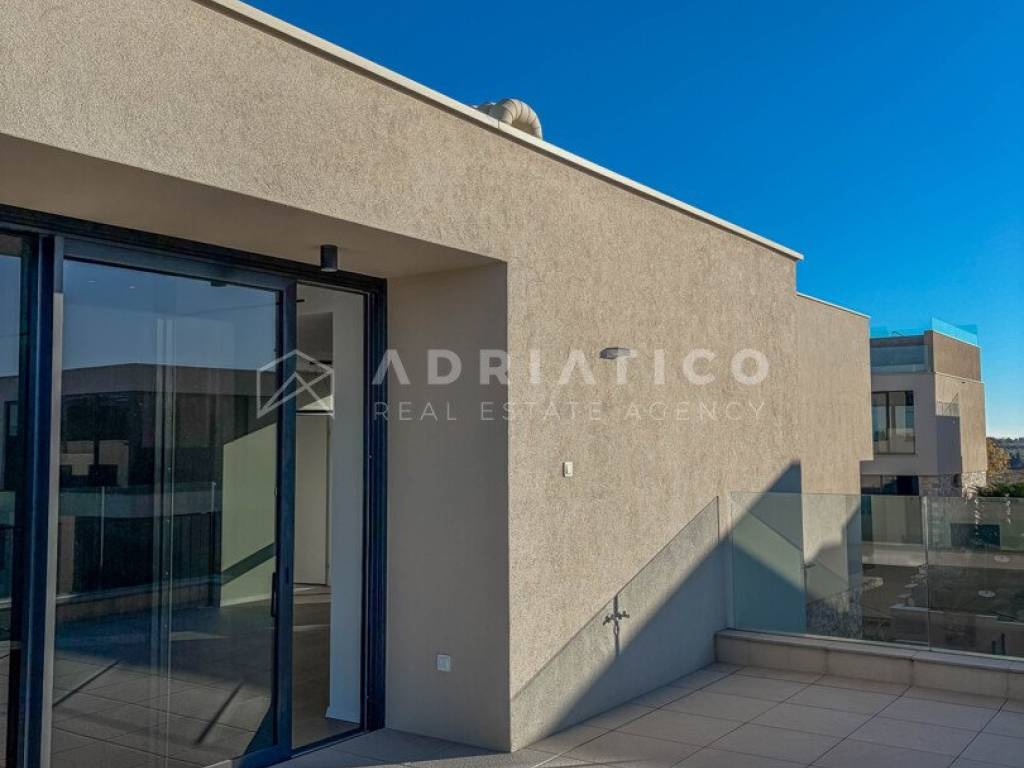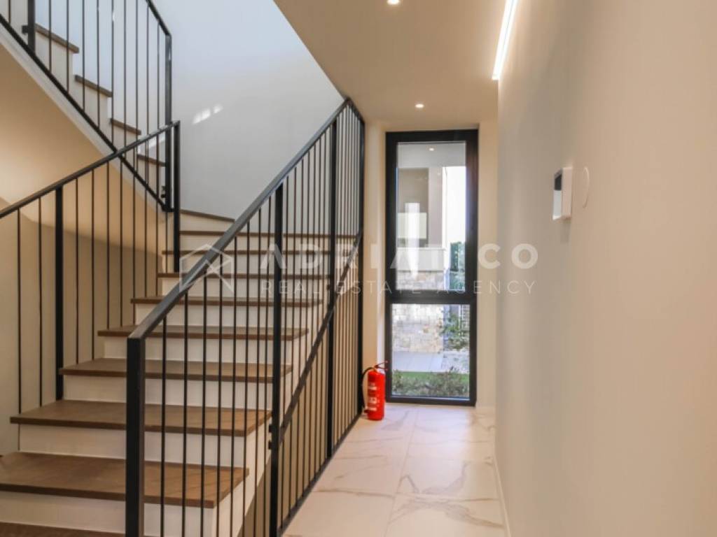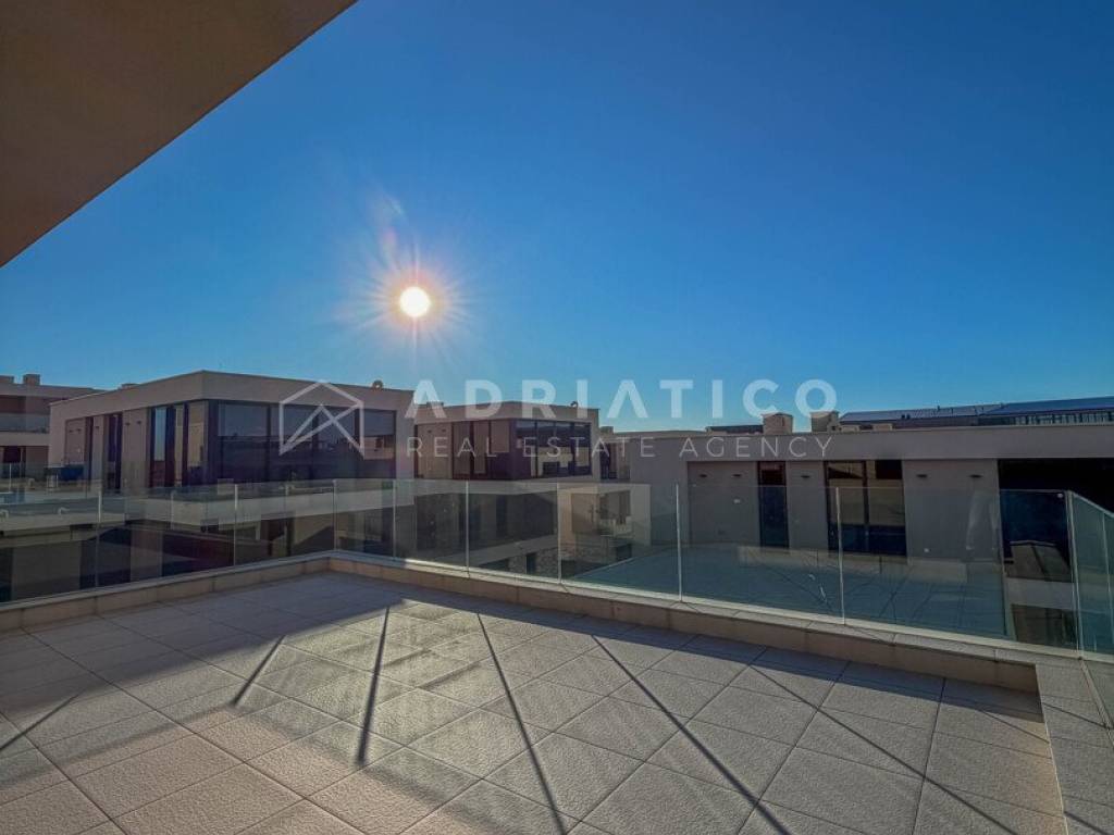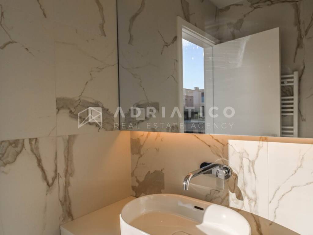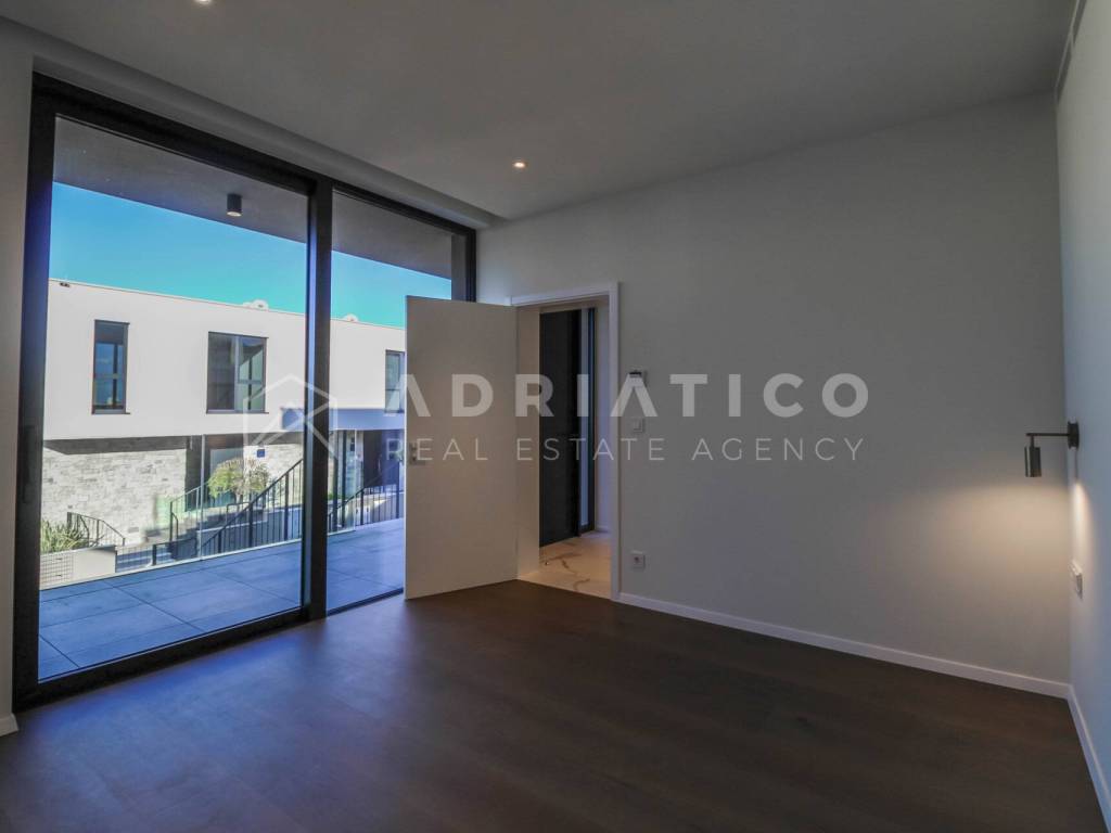 Zum Verkauf steht eine exklusive Doppelhaushälfte im Petram Resort an der Westküste Istriens. Der Direktkauf vom Eigentümer ermöglicht einen besonders attraktiven Preis. Das Haus erstreckt sich über mehrere funktional gestaltete Etagen, die durch einen privaten Aufzug verbunden sind und höchsten Komfort bieten. Das architektonische Konzept setzt auf Helligkeit, Großzügigkeit und einen offenen, unverbaubaren Meerblick. Die Immobilie verfügt über drei Schlafzimmer, drei Badezimmer sowie ein Gäste-WC. Der Wohnbereich bildet das Zentrum des Hauses mit direktem Blick auf das Meer und den Außenbereich. Hochwertige Ausstattung und moderne Bauweise erfüllen höchste Ansprüche. Eine Garage und insgesamt drei Stellplätze sorgen für zusätzlichen Komfort, besonders in der Saison. 24-Stunden-Sicherheitsdienst im Resort garantiert maximale Sicherheit. Beim Kauf durch eine Privatperson fällt die gesetzliche Mehrwertsteuer an. Diese luxuriöse Doppelhaushälfte mit Aufzug, Garage, drei Stellplätzen und Meerblick ist eine hervorragende Gelegenheit auf dem istrischen Immobilienmarkt.