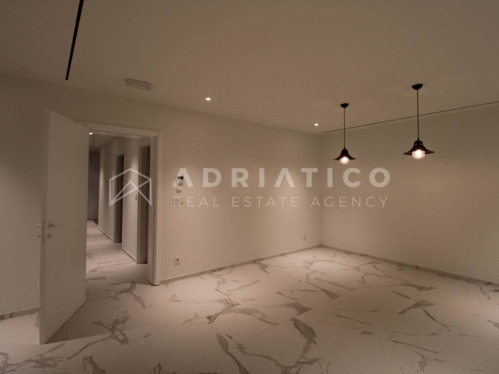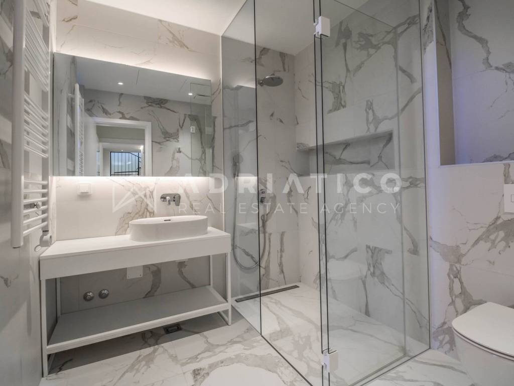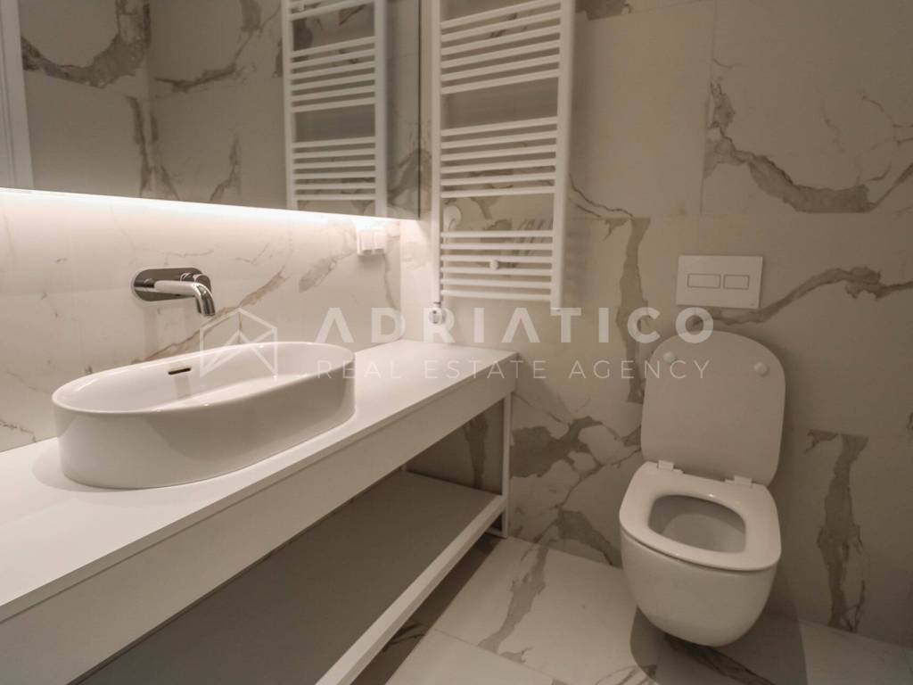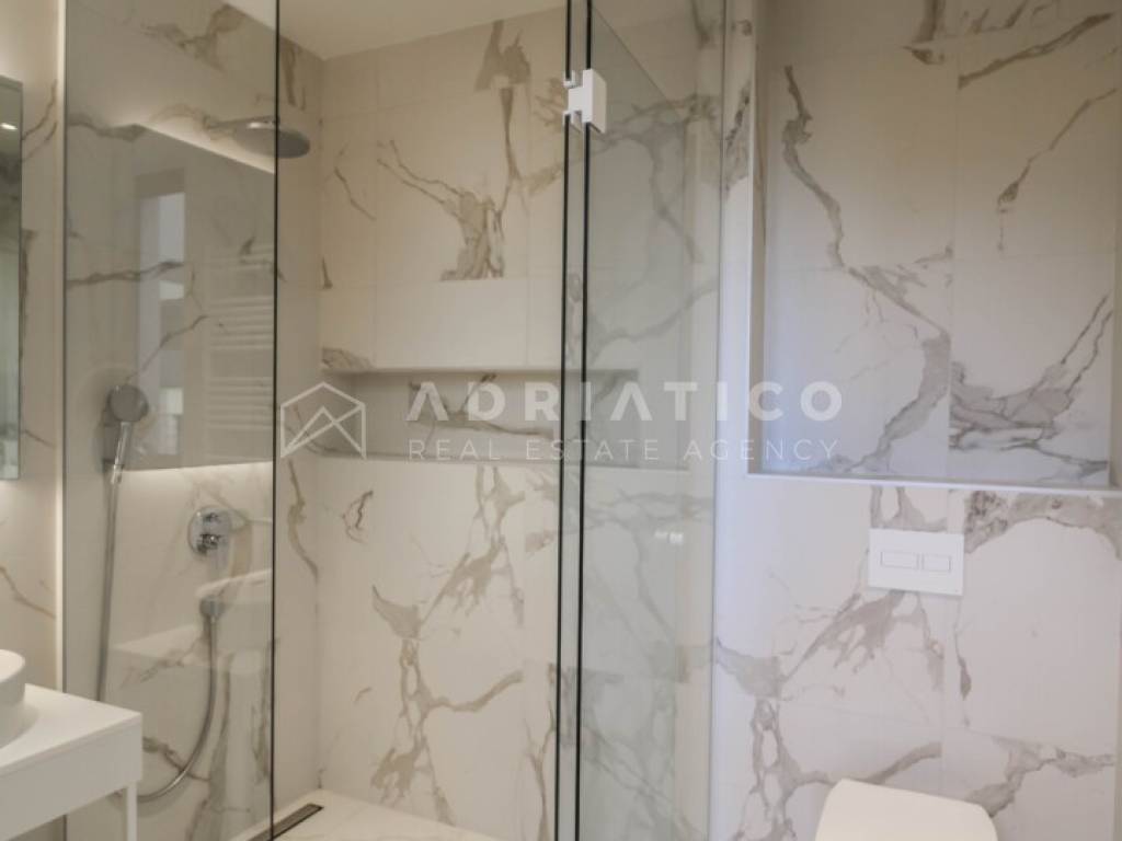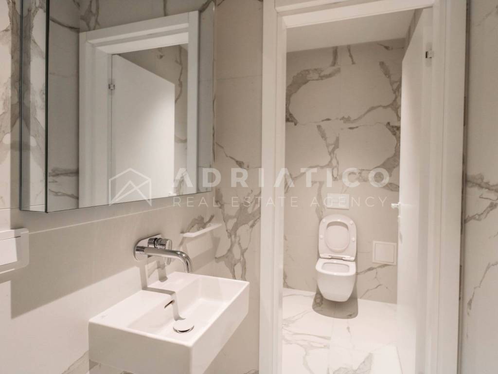 Zum Verkauf steht eine exklusive Doppelhaushälfte im Petram Resort an der Westküste Istriens. Der Direktkauf vom Eigentümer ermöglicht einen besonders attraktiven Preis. Das Haus erstreckt sich über mehrere funktional gestaltete Etagen, die durch einen privaten Aufzug verbunden sind und höchsten Komfort bieten. Das architektonische Konzept setzt auf Helligkeit, Großzügigkeit und einen offenen, unverbaubaren Meerblick. Die Immobilie verfügt über drei Schlafzimmer, drei Badezimmer sowie ein Gäste-WC. Der Wohnbereich bildet das Zentrum des Hauses mit direktem Blick auf das Meer und den Außenbereich. Hochwertige Ausstattung und moderne Bauweise erfüllen höchste Ansprüche. Eine Garage und insgesamt drei Stellplätze sorgen für zusätzlichen Komfort, besonders in der Saison. 24-Stunden-Sicherheitsdienst im Resort garantiert maximale Sicherheit. Beim Kauf durch eine Privatperson fällt die gesetzliche Mehrwertsteuer an. Diese luxuriöse Doppelhaushälfte mit Aufzug, Garage, drei Stellplätzen und Meerblick ist eine hervorragende Gelegenheit auf dem istrischen Immobilienmarkt.