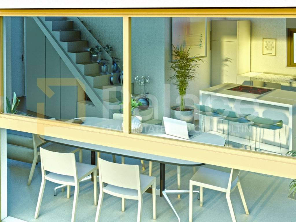 Dreifachverglasung in einer einzigartigen nikal-metallic Farbe, nach strengen RAL-Normen ausgeführt, gewährleistet erstklassige Energieeffizienz und maximale Undurchlässigkeit. Alle Öffnungen sind mit elektrischen Rollläden und integrierten Insektenschutzgittern ausgestattet.