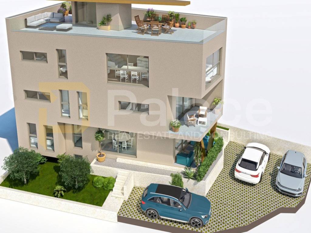 In einem Neubau, der die Luxusstandards in Šibenik neu definiert, bietet diese Wohnung eine perfekte Balance zwischen Tradition und zeitgenössischem Design. Mediterrane Elemente wie Stein und mineralischer Putz harmonieren perfekt mit modernen industriellen Details - Zementböden und Nikelakzenten.