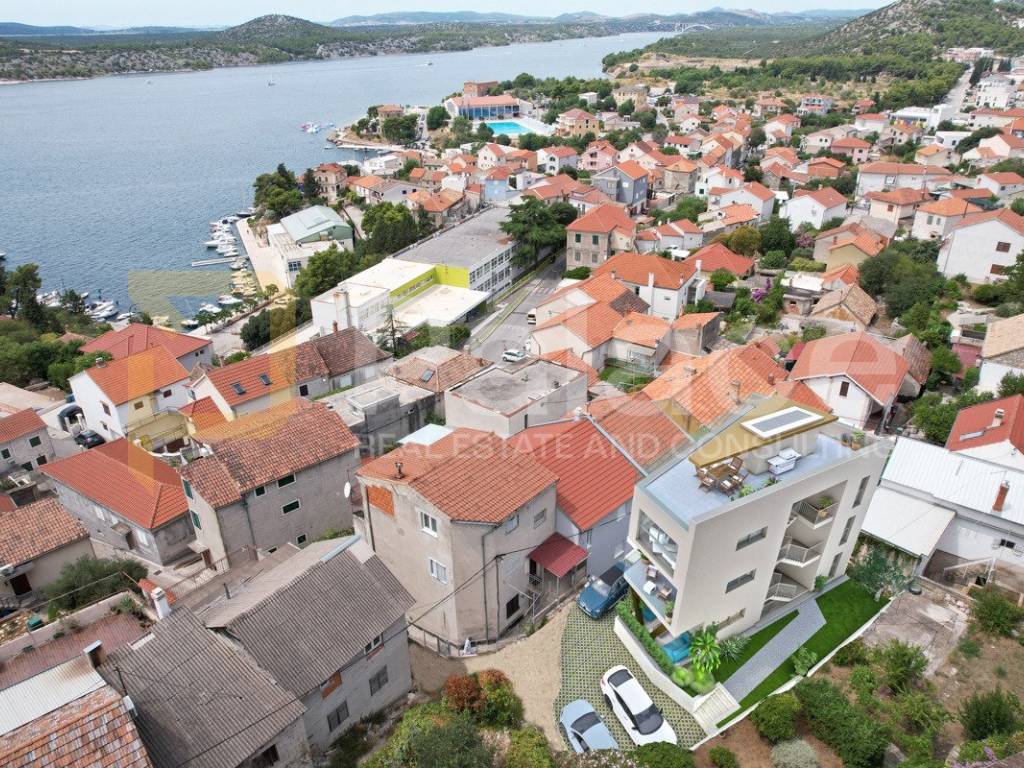Einzigartige "Golden Penthouse" - geräumige, luxuriös gestaltete Wohnung, die erstklassiges Design, Funktionalität und einen spektakulären Blick auf das Meer und die historische Altstadt von Šibenik mit einer Fläche von 99,68 m2 verbindet.
