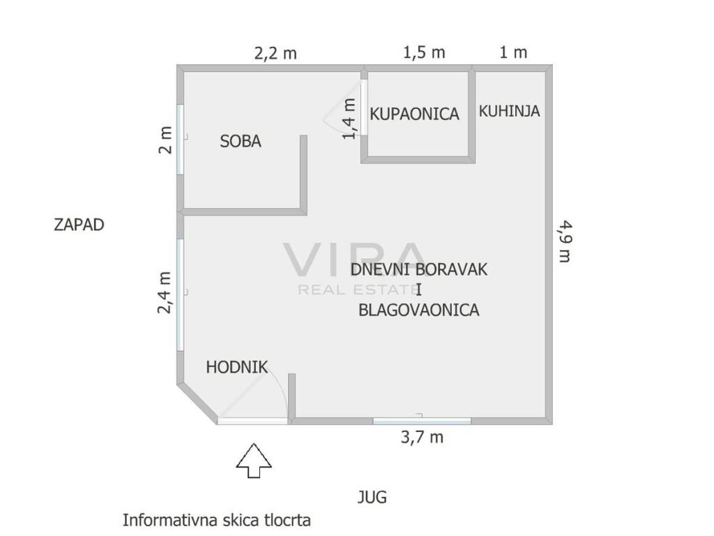 GARSONIJERA, PRODAJA, ZAGREB, TREŠNJEVKA, 36 m2 Prodaje se garsonijera površine 23 m2 u prizemlju zgrade. Zgrada ima ukupno 2 kata i nalazi se u ulici Jurja Dobrile. Stan se sastoji od dnevnog boravka, kuhinje, blagovaonice, spavaćeg dijela, kupaonice i hodnika. Stanu također pripada spremište u podrumu površine 6 m2 i spremište u dvorištu zgrade površine 7 m2. U neposrednoj blizini nalazi se javni prijevoz, trgovina, škola, vrtić i svi drugi bitni sadržaji. Orijentacija: Jug/Zapad Grijanje: peć na plin/struja Visina stropa: 2,60 m Parking: javni besplatni Cijena stana: 110.000,00 EUR Za više informacija: Lucija Jurič Tel: +385 91 6388795 Email: lucija@viranekretnine.hr Web: https://viranekretnine.hr ID NEKRETNINE: S2816