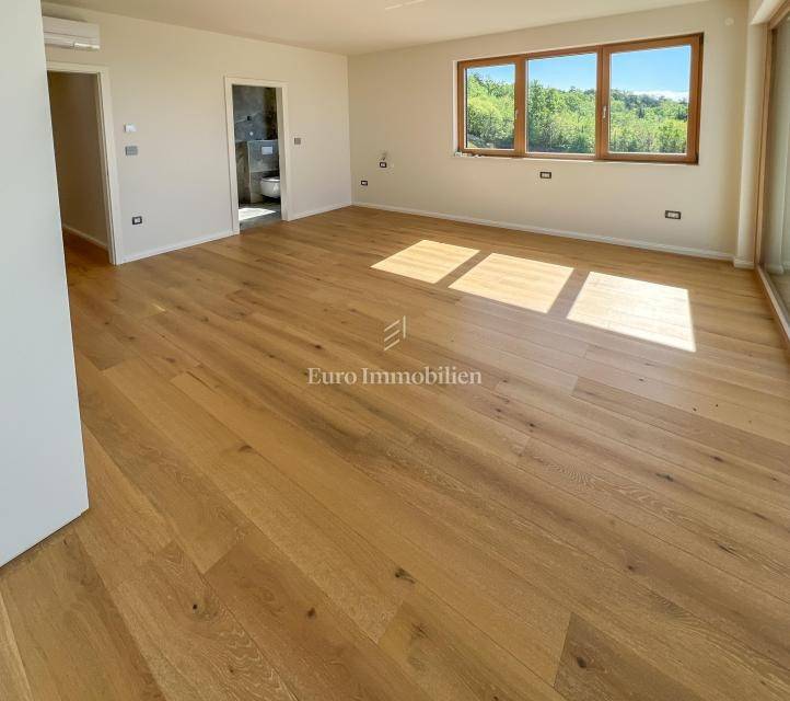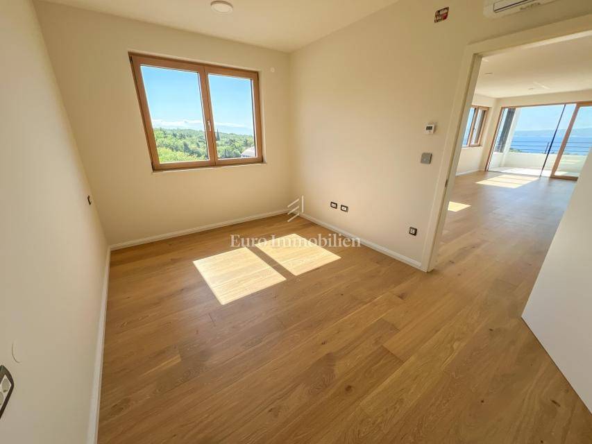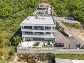 Zum Verkauf steht eine luxuriöse zweistöckige Wohnung mit Aufzug und einem wunderschönen Meerblick. Auf der ersten Etage befinden sich zwei Schlafzimmer, von denen eines einen Balkon mit Meerblick hat. Eine Innentreppe oder ein Aufzug führen in den zweiten Stock, wo sich ein Flur, ein Badezimmer, ein Schlafzimmer, eine Küche mit Esszimmer und ein Wohnzimmer mit Zugang zu einem Balkon mit Blick auf das Meer und die Stadt befinden. Die Wohnung verfügt über zwei Parkplätze, eine Elektrisch Ladestation für Fahrzeuge ist auch vorbereitet. Immobilie ist mit Alarmanlage, Videoüberwachung, Satellitenschüssel, Wärmepumpe für Fußbodenheizung ausgestattet und jedes Zimmer verfügt über eine Klimaanlage. In allen Zimmern ist Parkett verlegt, während die Badezimmer ist Keramik verlegt. Die Außentichlerrei besteht aus Aluminium mit Jalousien, Moskitonetzen und elektrischen Jalousien, und das Innertischlerei ist aus Holz. In dieser Bauphase besteht die Möglichkeit, Materialien auszuwählen.