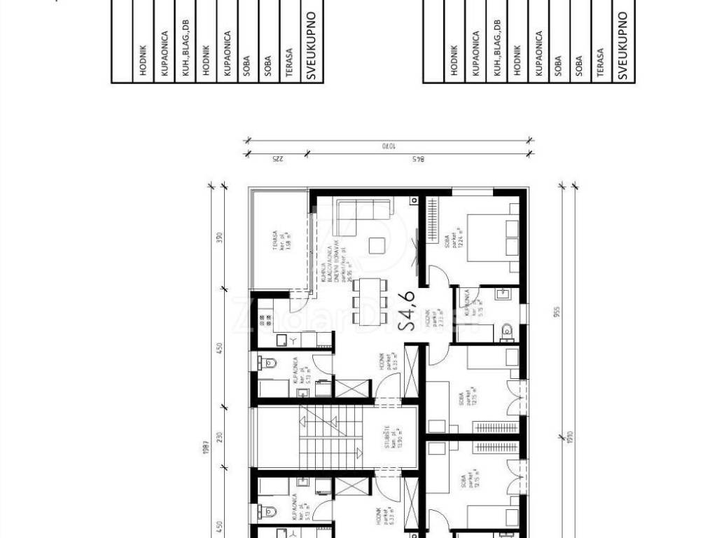 Im ersten Stock befinden sich zwei identisch geschnittene Zweizimmerwohnungen (S3 und S4) mit einer Gesamtwohnfläche von 82,57 m² bzw. 78,26 m².