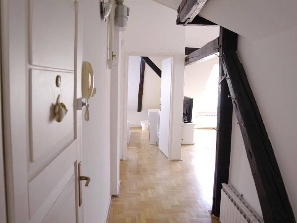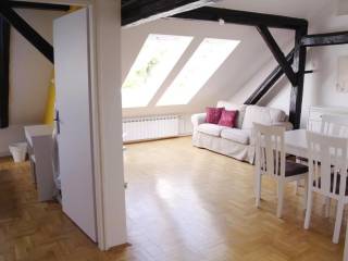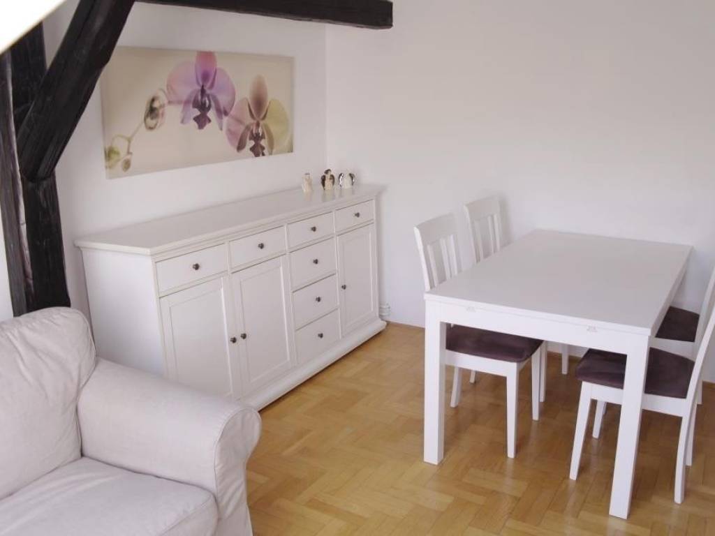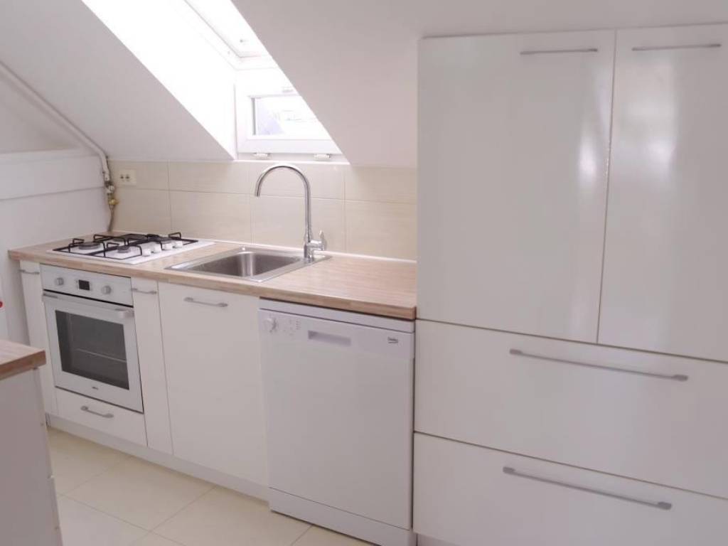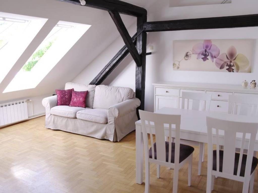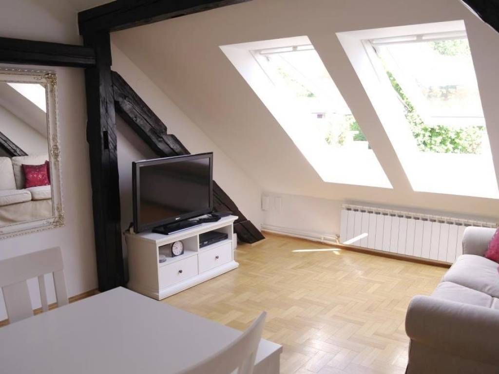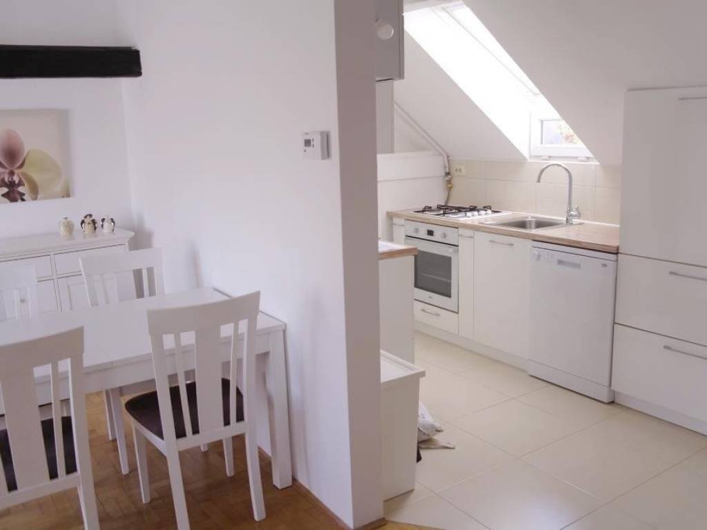The apartment was completely reburbished in 2007, it is situated on the 4th floor in a building without an elevator. It has 55 sq m and consists of 2 double bedrooms, kitchen, living room with dining and bathroom. This loft is very cosy and comfortable for living, it has planty of light during the day, orientation is South-East. The apartment is equipped with all necessary appliances; dish washer, washing machine, AC, cable TV and Internet. It is located in city centre, Dalmatinska street, in a quiet environment but close to all city perks, nearby street Ilica, Flower squre and main square Ban Jelacic. Only for long term lease, pets are not alowed. There is a possibility of parking in the yard of the building. Agency fee 1 rent.