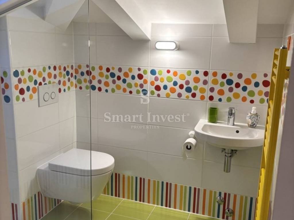 Die zweistöckige Wohnung mit einer Fläche von 183,44 m befindet sich im ersten Stock sowie im ausgebauten Dachgeschoss eines Hauses mit nur drei Wohneinheiten. Sie verfügt über einen separaten Eingang, der maximalen Komfort und Privatsphäre gewährleistet.