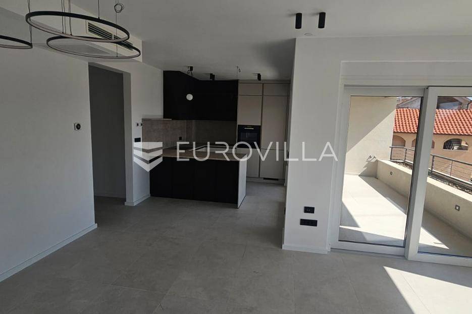Kaštel Stari, luksuzna novogradnja, komforan trosoban stan od 101 m2, smješten na prvom katu urbane zgrade s liftom i podzemnom garažom.Ukupne tlocrtne površine 101,1 m2, od čega je zatvoreni stambeni dio 85 m2 i veliku natkrivena terasu s žandinjerima 16,1 m2 te dva garažna parkirna mjesta uz dodatno jedno vanjsko parkirno mjesto. Sastoji se od: dnevnog boravka s kuhinjom i blagovaonicom otvorenog tipa (33,3 m2), hodnika, tri komforne spavaće sobe (jena zamišljena kao garderoba), dvije kupaonice te lođe od 13,5 m2 na jugu-istok.Uz kupnju stana pripadajuća dva garažna mjesta 26,5 m2, i ostavu u garaži od 2,9 m2 te jedno vanjsko parkirno mjesto od 12,3 m2 (sve uključeno u cijenu).Potpuno opremljena kupaonica i kuhinja po mjeri s aparatima visokog standarda.Na prekrasnoj okućnici ugrađen je automatiziran sustav navodnjavanja zelenih površina te je zasađeno mediteransko odraslo bilje a zgrada ima i osobu zaduženu za brigu i održavanje prostora i zelenila.Orijentacija stana je jug- istok, a velike staklene stijene osiguravaju obilje prirodnog svjetla i prozračnost, što doprinosi komforu življenja u ovoj nekretnini.Odlična pozicija, u blizini svih sadržaja potrebnih za ugodan život, sve na par minuta hoda, kao i plaža te šetnica uz more. Izvrsna prometna povezanost i komforan pristupni put do zgrade. Međunarodna Zračna luka Split udaljena je 10 km, a u blizini je i poznata marina za brodove "Kaštela", te izvrsna pristupačna brza cesta.Grad Kaštela, s jednom od najduljih obala u Hrvatskoj, smješten je između dva UNESCO-ova grada, Splita i Trogira do kojih se stiže kratkom i ugodnom vožnjom. Zahvaljujući izvrsnoj lokaciji, predivnom prirodnom okruženju i bogatoj ponudi sadržaja, predstavlja idealno mjesto za ugodan i kvalitetan život ili godišnji odmor.Nekretnina je odlično ulaganje za tvrtke u sustavu PDV-a.Planirani završetak radova 03/2026. godine.Visoko kvalitetna gradnja i korištena oprema:postavljene podove, parket i keramičke pločice.električno podno grijanje s digitalnim upravljanjem instalirano u kupaonicikompletno opremljena kupaonica (električni bojler za grijanje vode, sanitarije, walk-in tuš u okviru zadanog cjenovnog ranga)ulazna protuprovalna i protupožarna vrataInverter klima uređaj snage 3,5 kW u dnevnom boravku i svim sobamaunutarnja stolarija bijele boje i ravnih, modernih linijavanjska stolarija antracit PVC, s podizno kliznim stijenkamaoluci skriveni u fasadivrhunska toplinska i zvučna izolacija, vanjska fasada 8 cm kamena vunaNekretnina će biti izvedena u rangu A+ energetskog certifikata sukladno standardima.Za više informacija stojimo Vam na raspolaganju.... Više na eurovilla.hr, ID: 742115