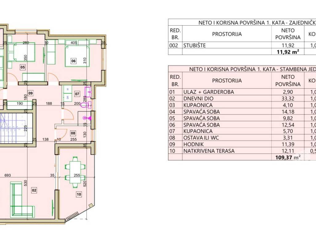 Zum Verkauf steht eine geräumige und modern gestaltete Wohnung im ersten Stock eines kleineren Wohngebäudes, das nach dem Prinzip eine Wohnung pro Etage gebaut wurde und somit zusätzliche Privatsphäre und Ruhe bietet.