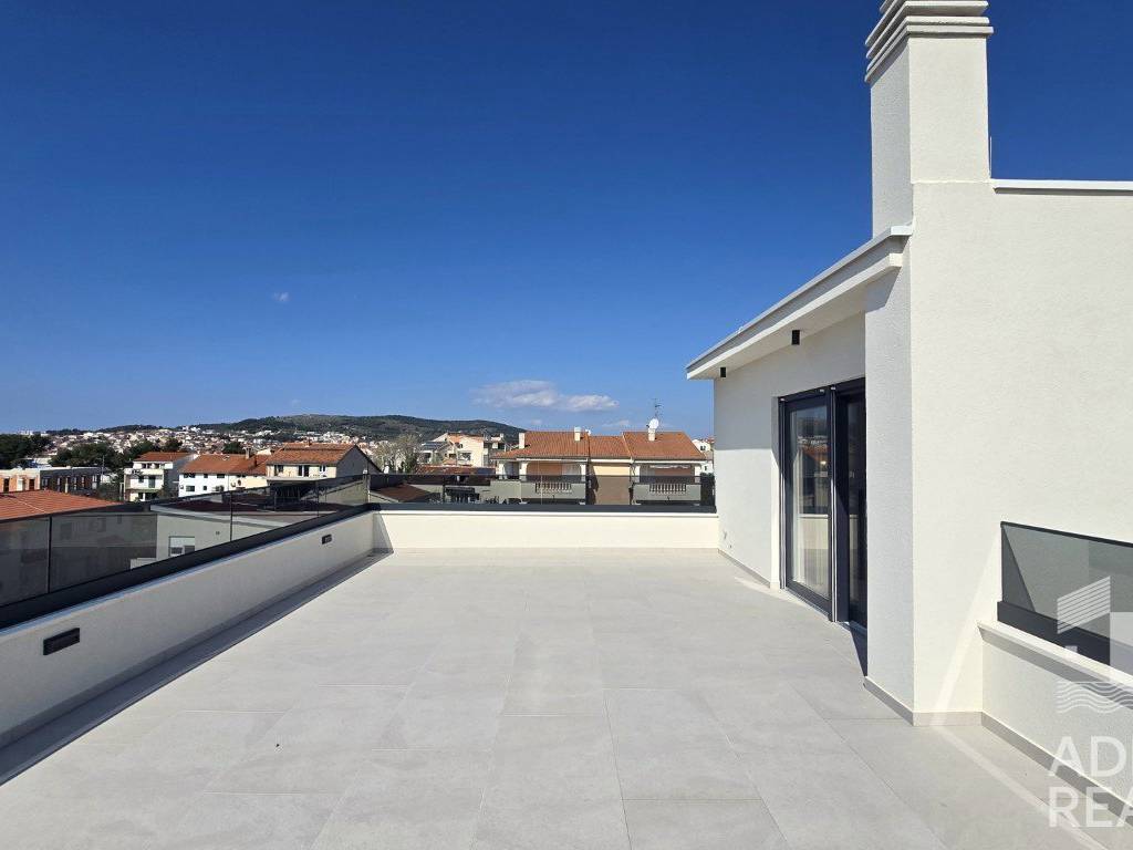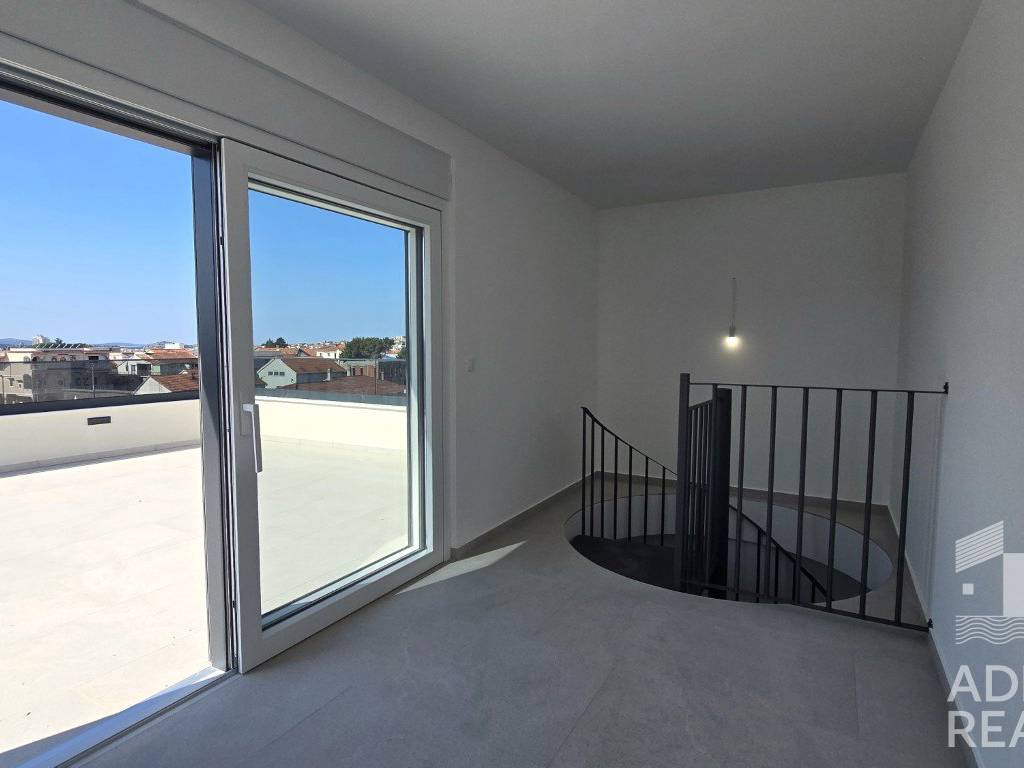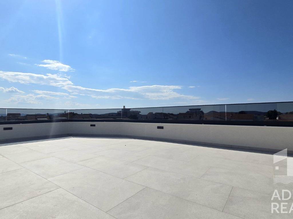 Vom Eingangsbereich führen interne Treppen in die dritte Etage, wo sich ein geschlossener Raum für eine Sommerküche sowie eine großzügige Dachterrasse mit Meerblick befindet – ideal zum Entspannen und für gesellige Stunden.