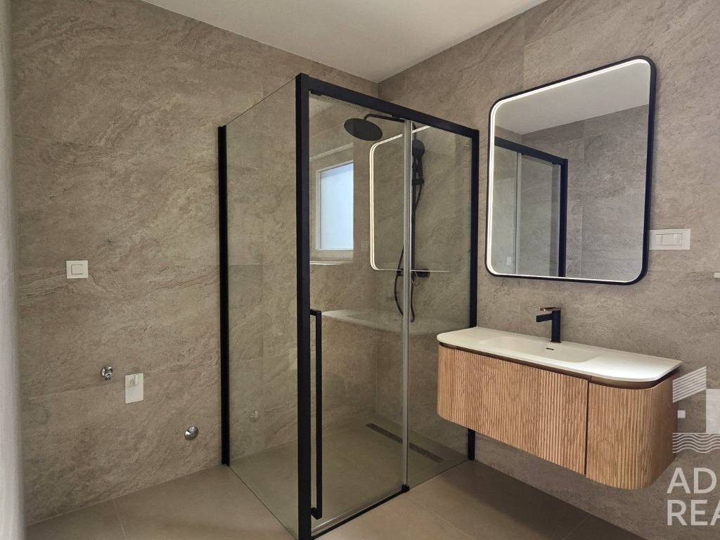 Beim Bau und der Ausstattung wurden hochwertige Materialien verwendet: Keramikfliesen, PVC-Fenster mit elektrischen Rollläden, Fußbodenheizung in allen Räumen sowie Klimaanlagen im Wohnzimmer und in allen Schlafzimmern.
