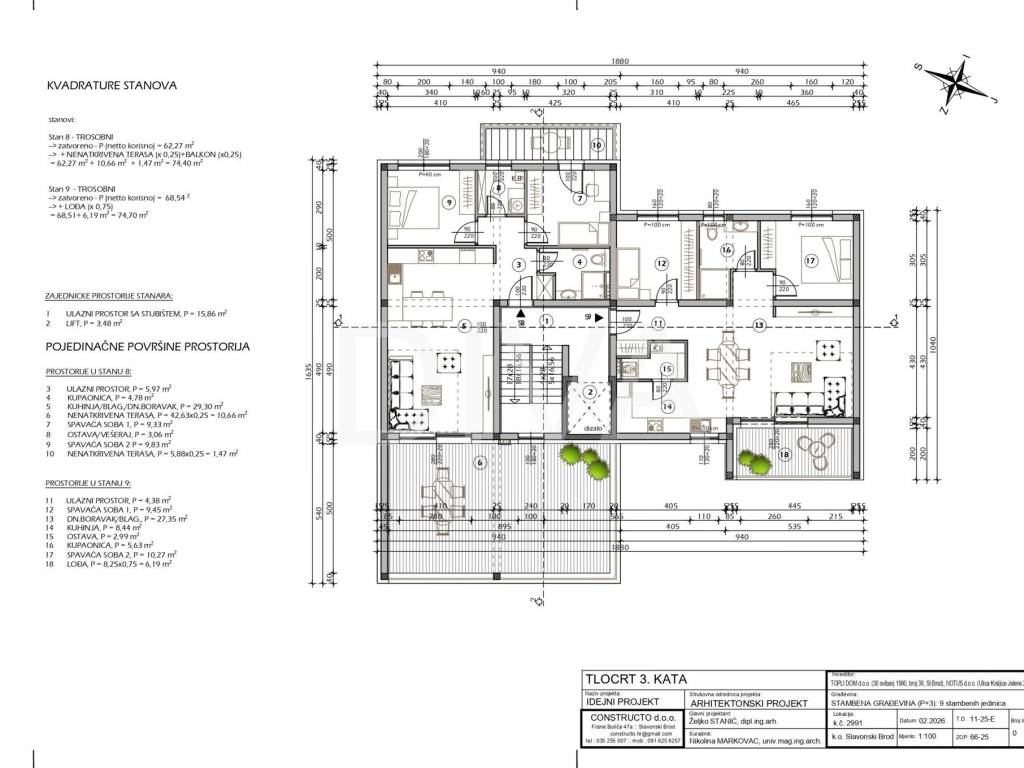 S8 Trosoban stan s velikom terasom (74,40 m)