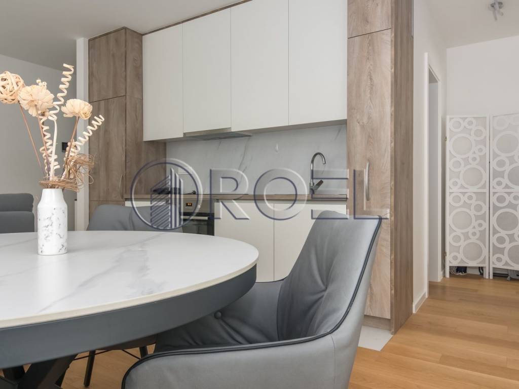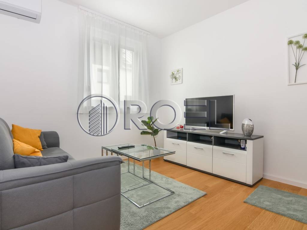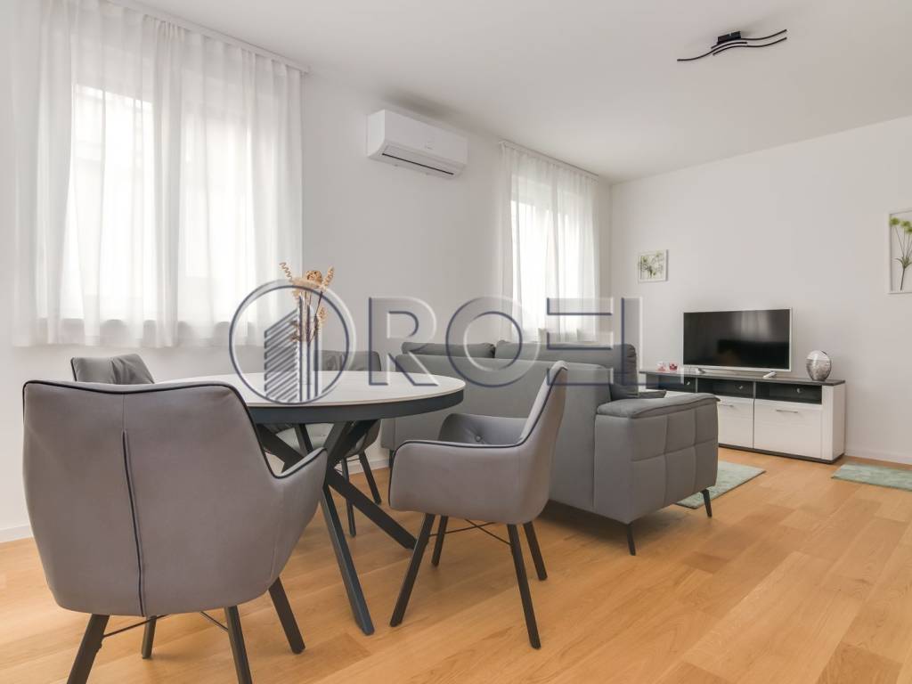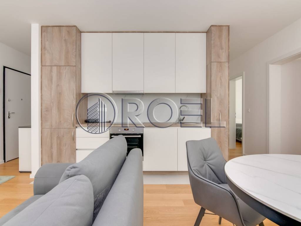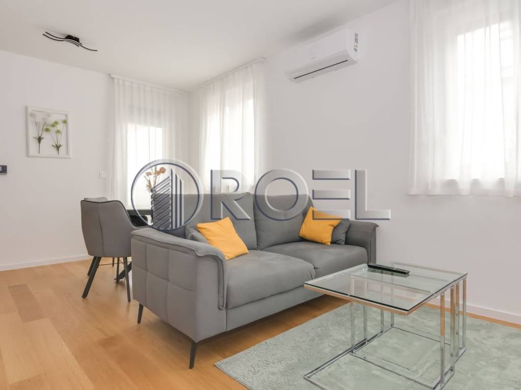 Fully furnished three-bedroom apartment for rent, measuring 55 m, located on the first floor of a new building built in 2023. The building has three floors and an A+ energy certificate, which ensures high efficiency and lower utilities.