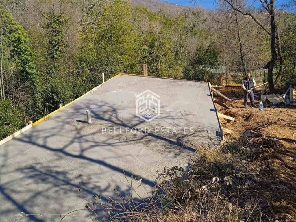 Prodaje se građevinsko zemljište površine 800 m2 na jednoj od najatraktivnijih lokacija iznad Ičića. Projekt je trenutno u roh-bau fazi (izvedeni temelji), što budućem vlasniku omogućuje nastavak gradnje odmah, bez čekanja na dugotrajne procese pripreme terena.