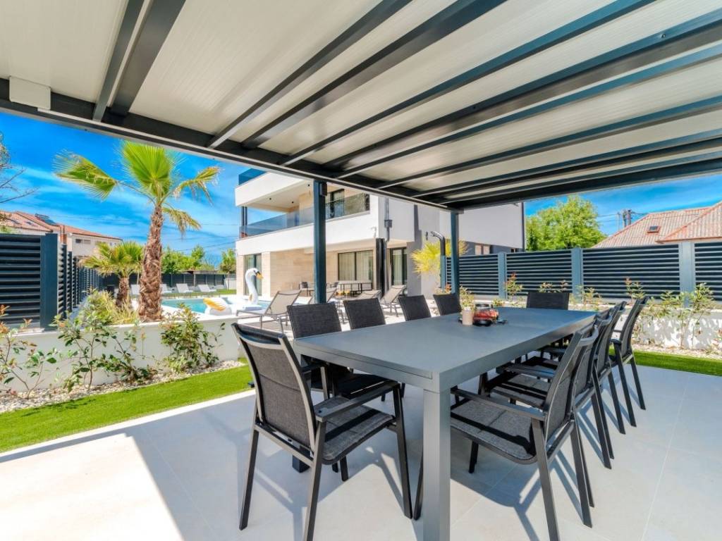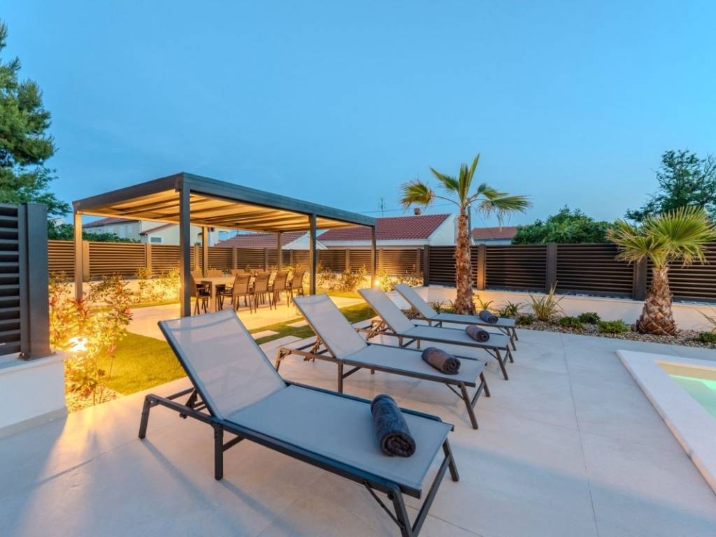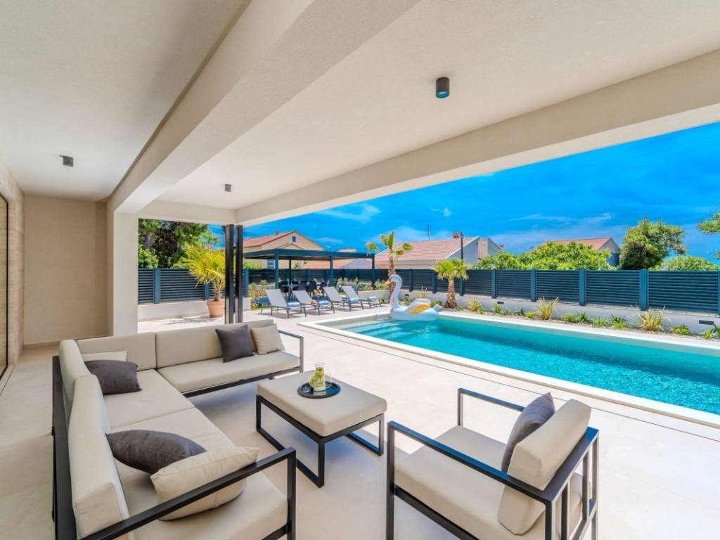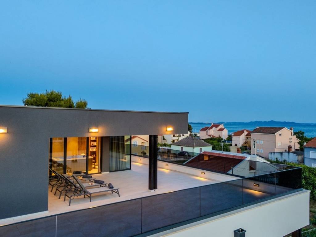 Dieses Anwesen vereint Luxus und Funktionalität auf perfekte Weise ideal als Familienhaus, aber auch als Kapitalanlage für eine exklusive Ferienvermietung. Zadar und der Flughafen sind 20 km entfernt, das Meer und der erste Strand nur 120 m, und das Stadtzentrum mit Restaurants, Bars, Apotheken, Schule und Supermärkten erreichen Sie in 5 Gehminuten.