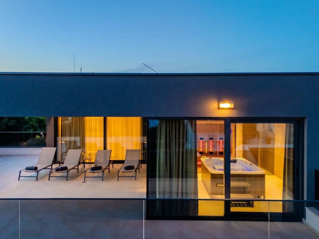 Whirlpool und Sauna im Dachgeschoss mit großer Terrasse und Panoramablick auf das Meer