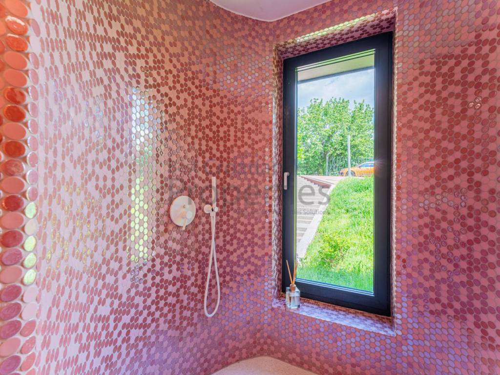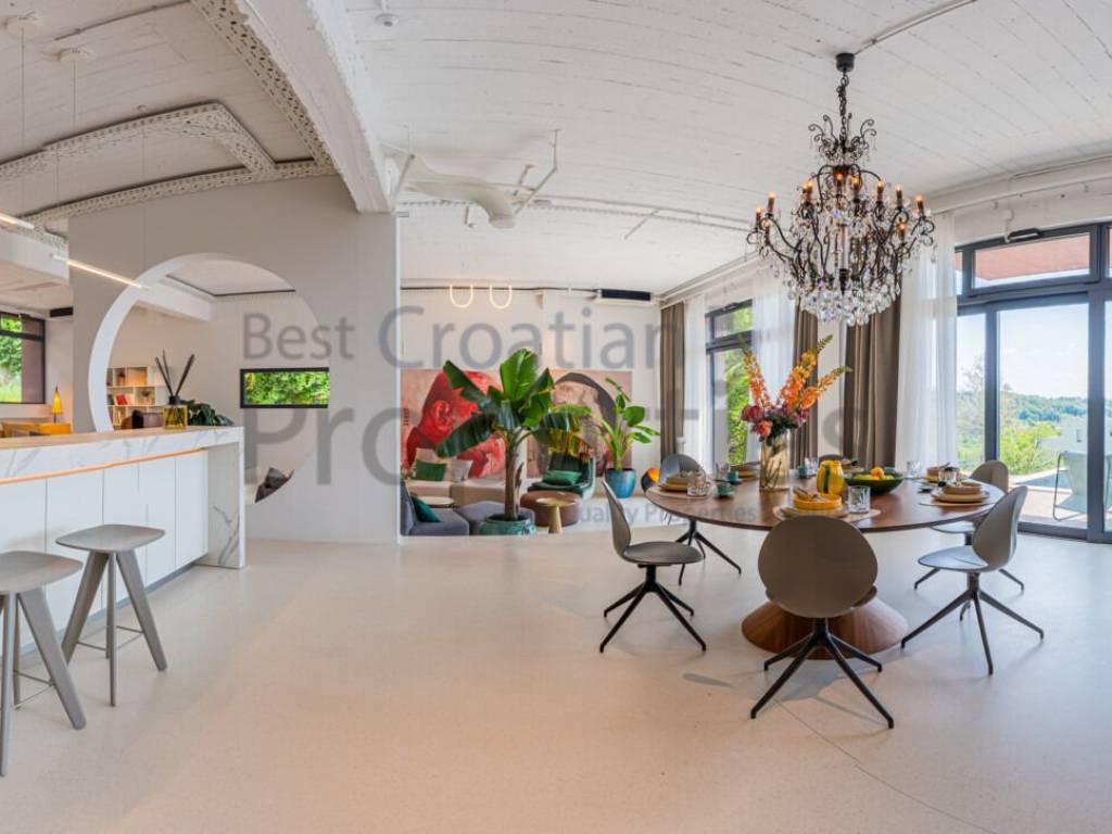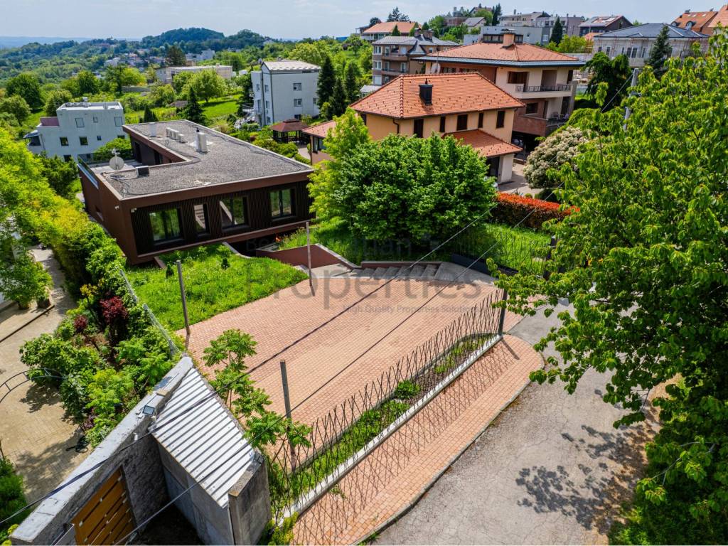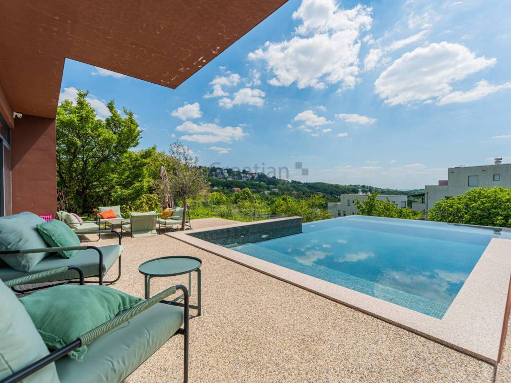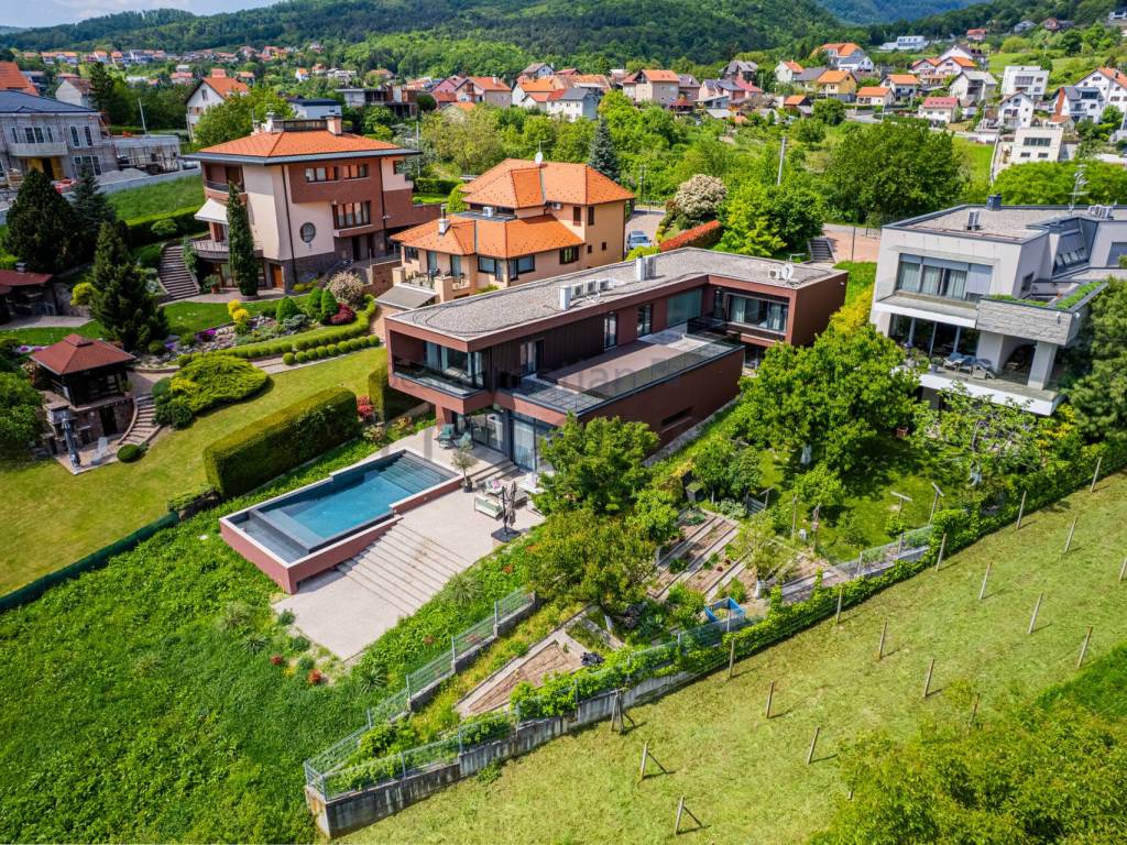 Izgrađena 2023.g. na padinama sljemena i okružena lijepim prizorima sa svih strana stoji dvoetažna vila od 264 m2 grijane površine, potpuno dizajnerski uređena, obogaćena preljevnim bazenom i vinogradom na parceli od ukupno1532 m2.