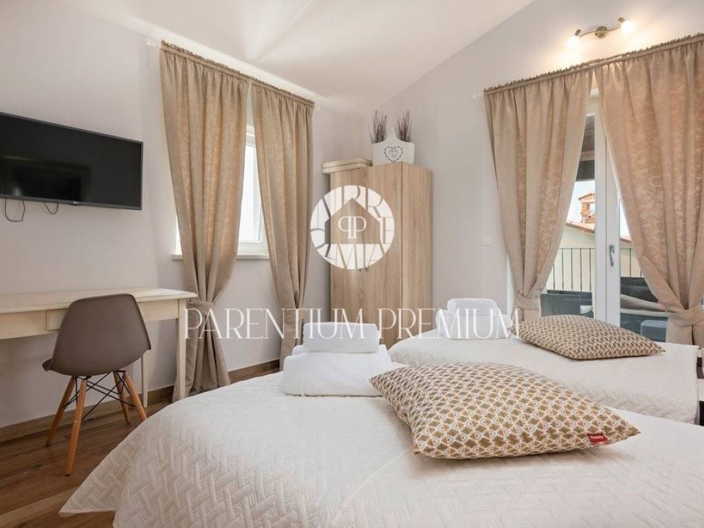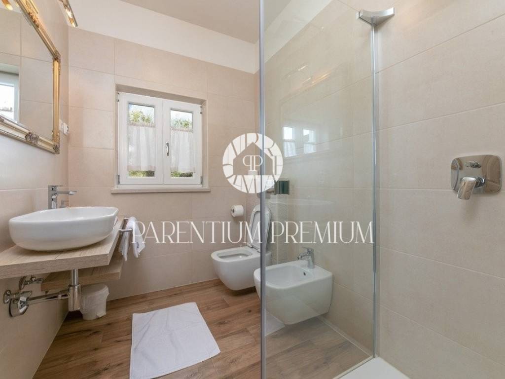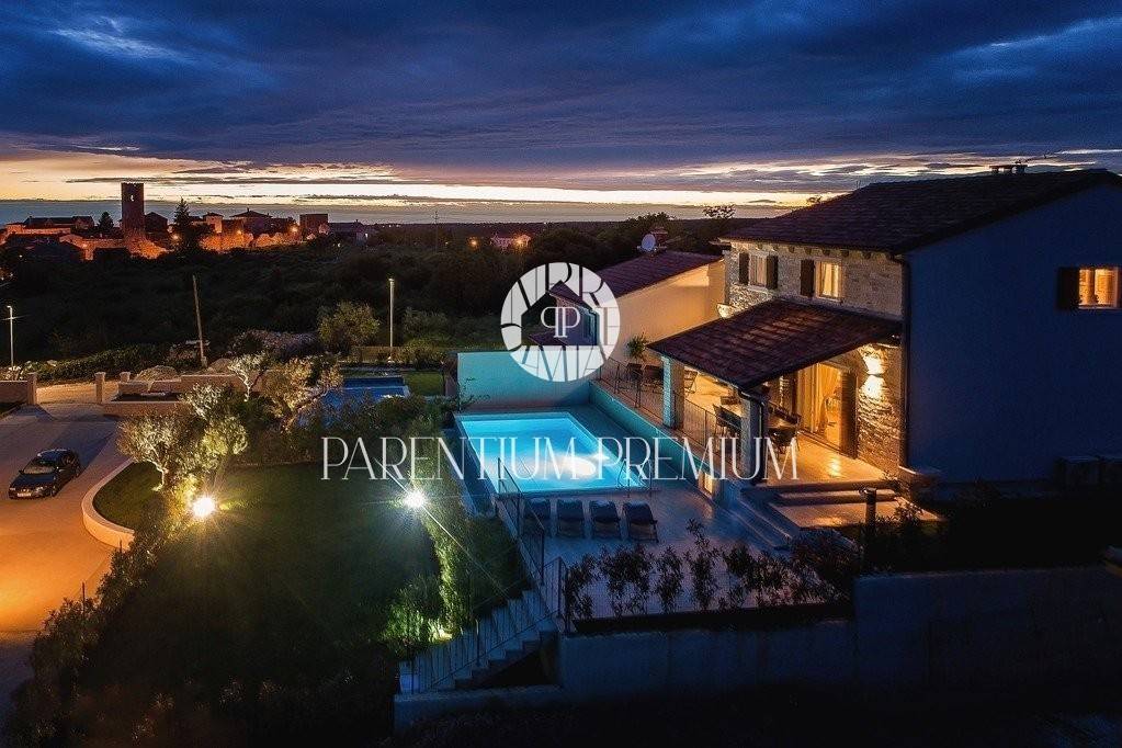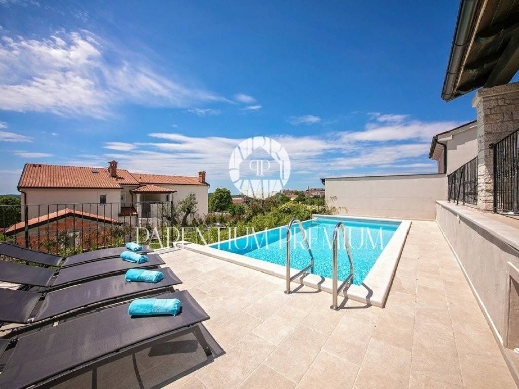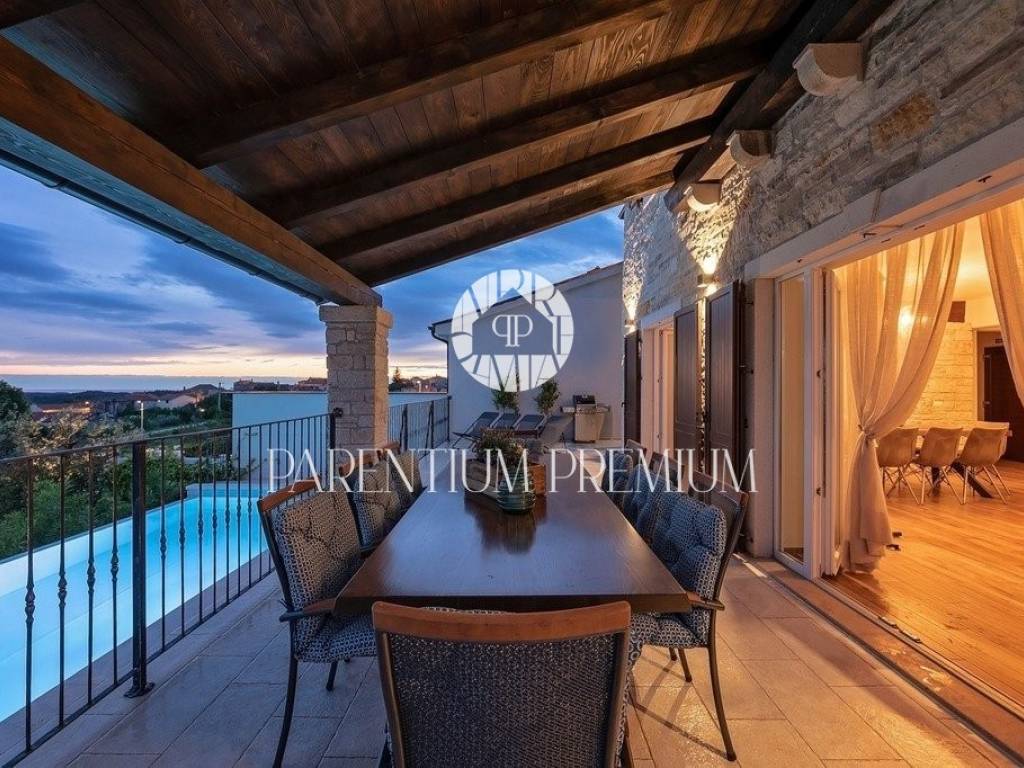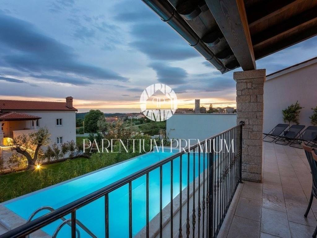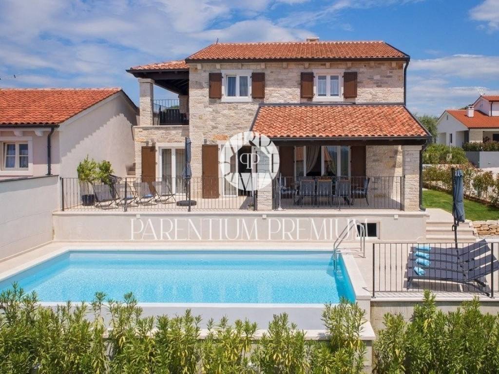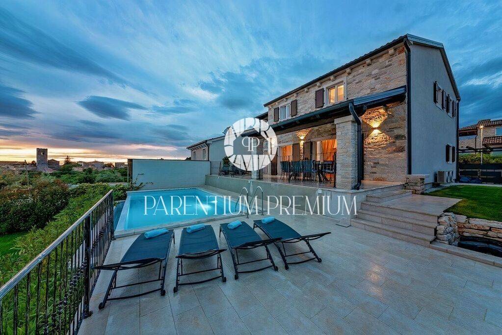 Diese Designervilla von 355 m2 mit einem Grundstück von 562 m2 wurde im istrischen Stil erbaut und befindet sich in einem kleinen, ruhigen Ort in der Nähe der Stadt Porec.