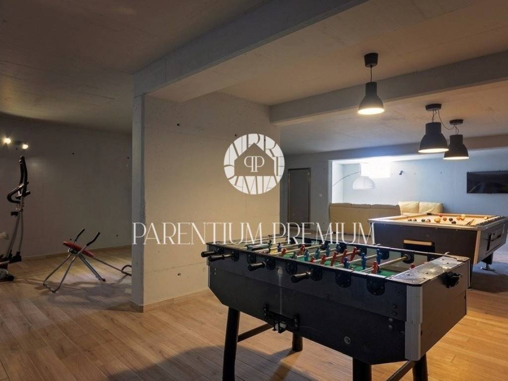 Das Erdgeschoss der Villa besteht aus einer Eingangshalle, einer Küche, einem Esszimmer und einem großen Wohnzimmer mit Zugang zu einer überdachten Terrasse, einem schönen Pool und einem Innenhof. Es gibt ein weiteres Schlafzimmer und ein Badezimmer. Auf der zweiten Etage befinden sich drei große Schlafzimmer, jedes mit eigenem Bad. Zwei Schlafzimmer haben Zugang zur überdachten Terrasse mit schöner Aussicht. Jedes Schlafzimmer ist mit Klimaanlage und einem TV ausgestattet. Im Untergeschoss der Villa gibt es ein Spielzimmer, Fitness und ein kleines Wohnzimmer.