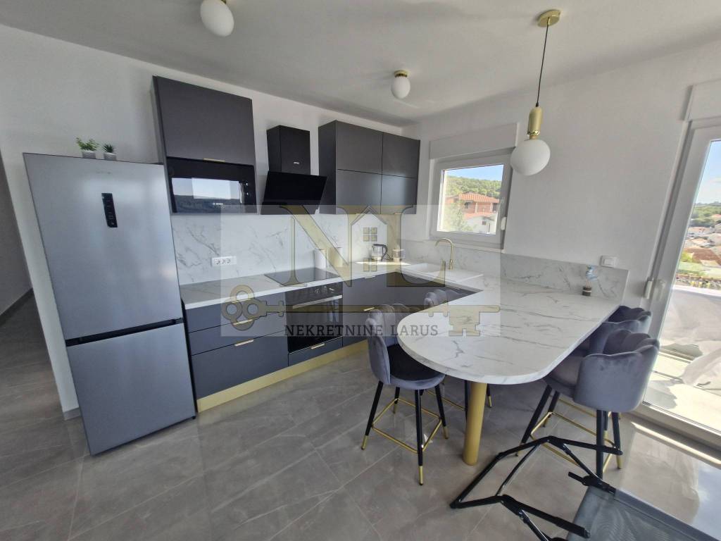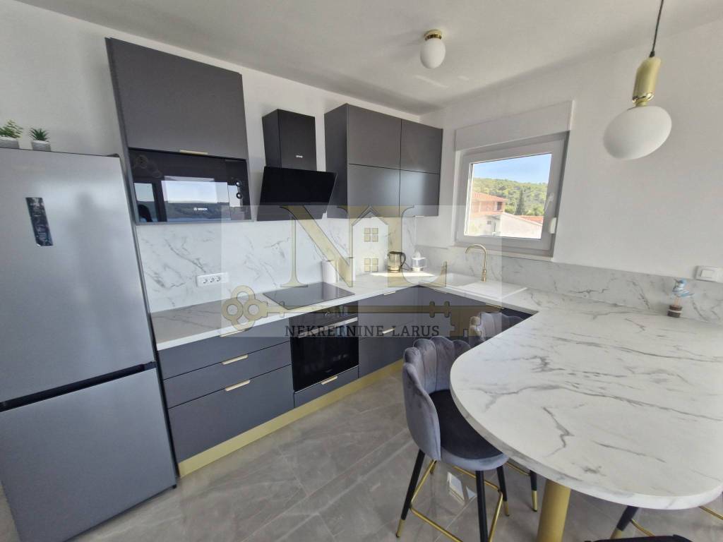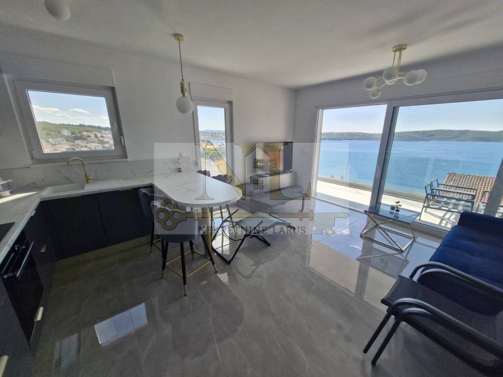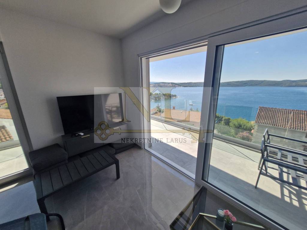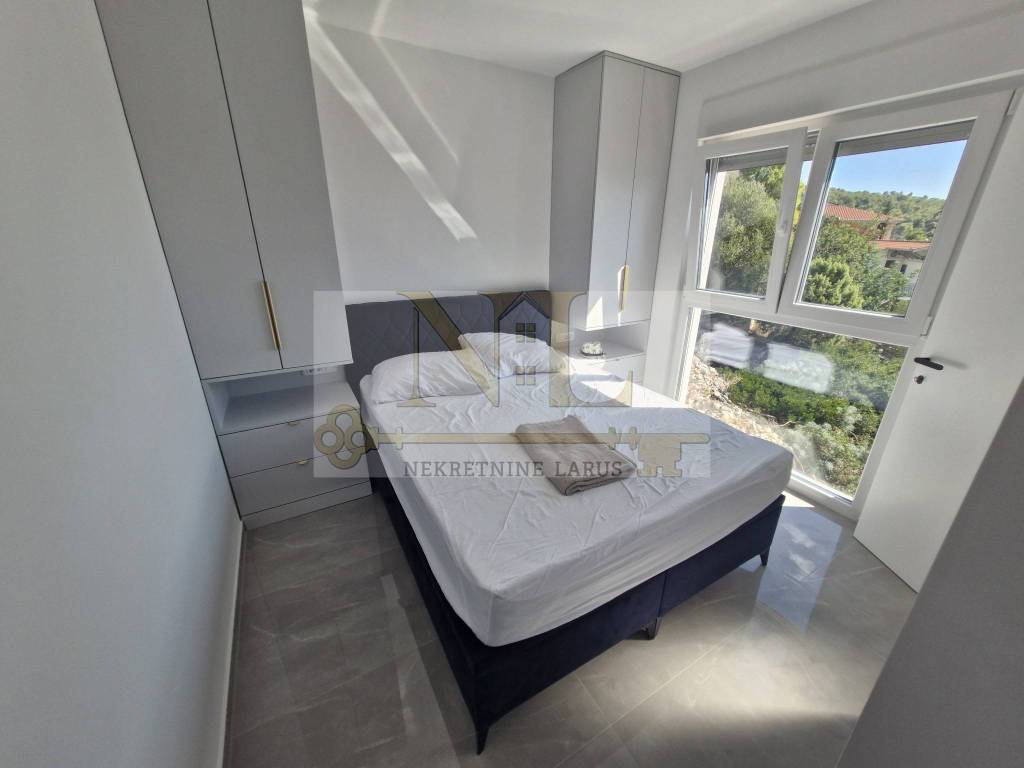 Das nach Süden ausgerichtete Gebäude ist den ganzen Tag über sonnig und bietet gleichzeitig einen wunderschönen Blick auf die Bucht, das offene Meer, Okrug, die Insel Šolta und andere Sehenswürdigkeiten. Das Gebäude liegt in einer Sackgasse ohne viel Verkehr und Lärm, hinter dem Gebäude gibt es viel Grün und Wald.