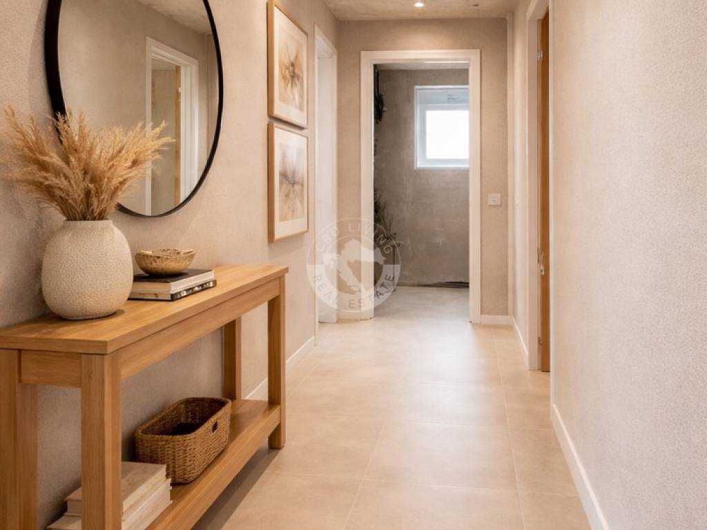 Die Wohnung bietet 3 Schlafzimmer und 2 Badezimmer sowie ein geräumiges offenes Wohnzimmer mit Küche und Essbereich, das mit natürlichem Licht durchflutet ist. Besonderes Highlight ist die überdachte Terrasse von 27 m2, die idealen Raum zum Entspannen und Genießen der mediterranen Atmosphäre und des Meerblicks bietet. Ein Aufzug ist im Gebäude vorhanden.
