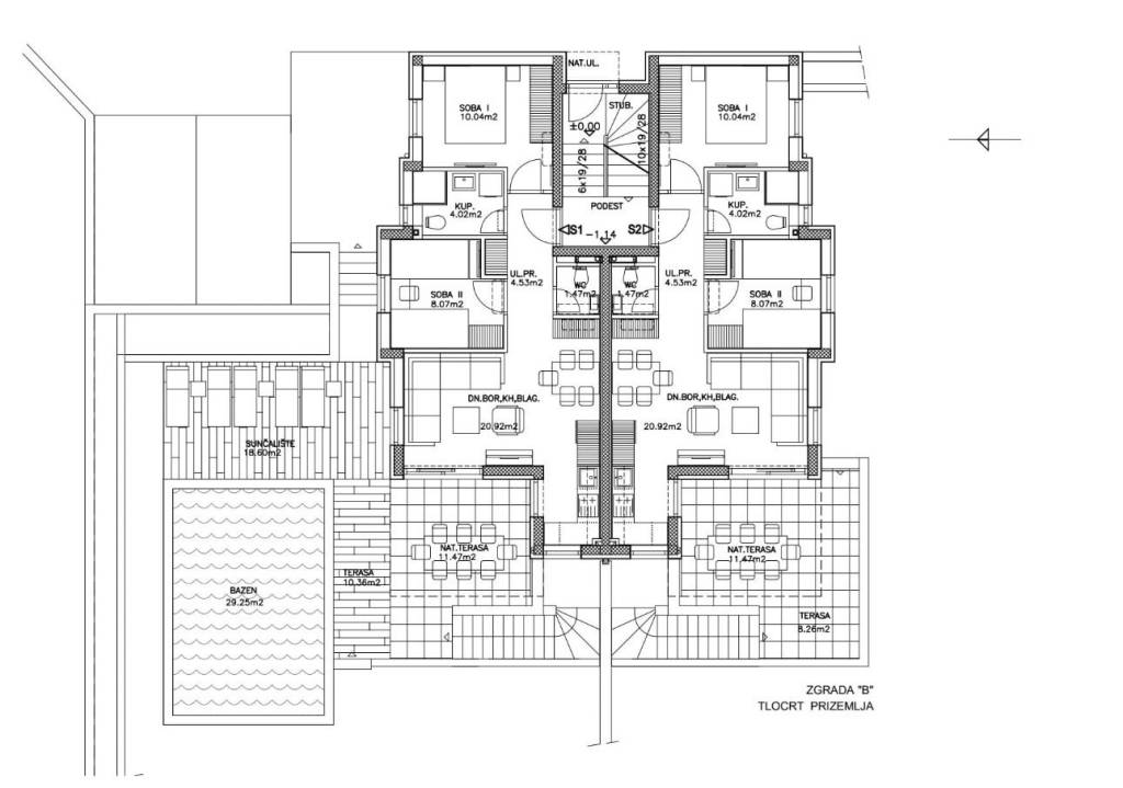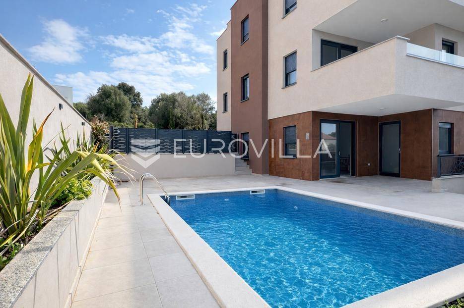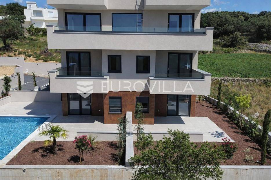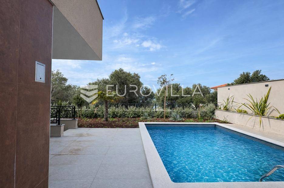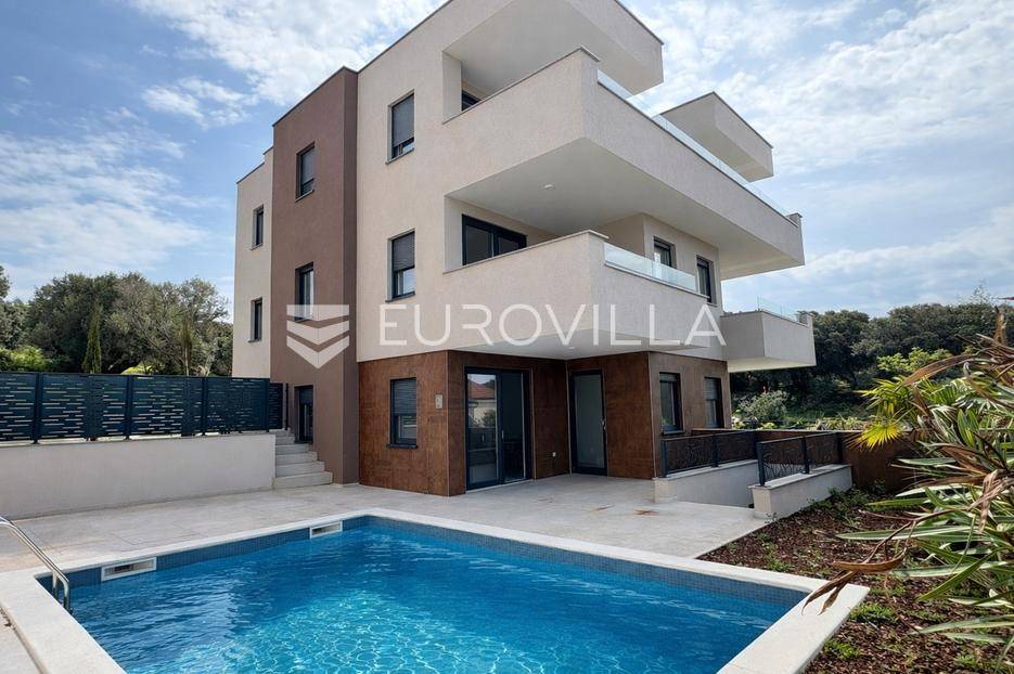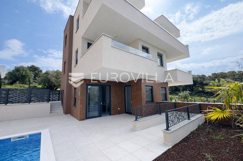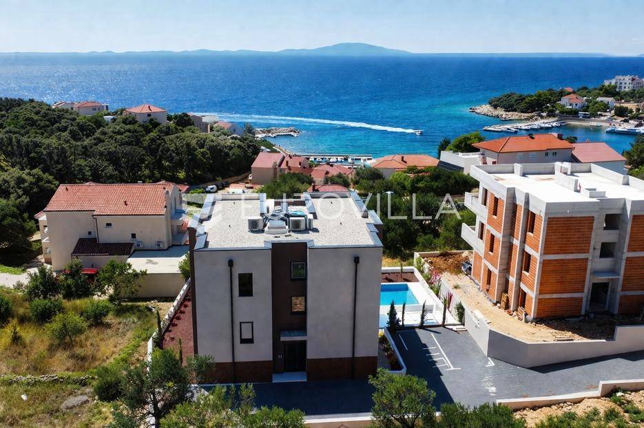 Pag, Jakišnica, novogradnja, prizemni stan s bazenom i vrtom, 122,74 m2Na prodaju je vrhunski opremljen stan u prizemlju manje stambene zgrade s ukupno 5 jedinica, smješten u mirnom dijelu Jakišnice, na samom rubu građevinskog pojasa.Stan S1, zatvorene površine 57,38 m2 sastoji se od dvije spavaće sobe, kuhinje s blagovaonicom i dnevnim boravkom, kupaonice, zasebnog wc-a te natkrivene terase. Nekretnini dodatno pripada konoba u podrumu s kuhinjom i kupaonicom površine 33,15 m2, kao i vrt 66,10 m2, bazen 29,25 m2, sunčalište 18,60 m2 te parkirno mjesto.Ukupna neto korisna površina iznosi 122,74 m2.Stan odlikuje vrlo kvalitetna oprema od čega izdvajamo:Mitra protuprovalna i protupožarna vrataMDF unutarnja vrata sa skrivenim pantimaTroslojna stolarija s komarnicima i električnim roletamaBjelini parket u sobama italijanska gres porculan keramika velikog formataPodno električno grijanje te Daikin klima uređajiGeberit sanitarije, Hansgrohe slavine i tuševi te tuš kabine s kaljenim staklom 8mmOdlična nekretnina za odmor, cjelogodišnje korištenje ili turistički najam na jednoj od mirnijih i uređenijih lokacija sjevernog dijela otoka Paga.Za više informacija stojim na raspolaganju.... Više na eurovilla.hr, ID: 694225