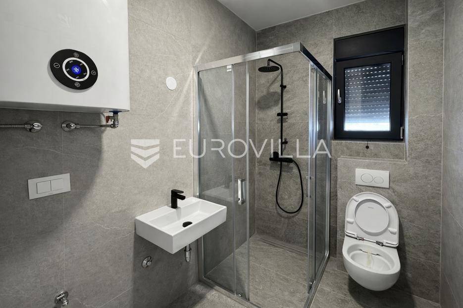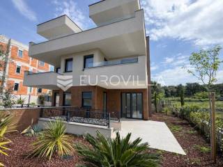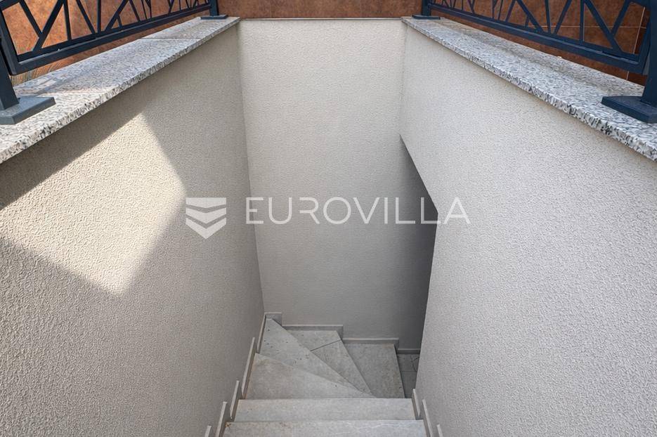 Pag, Jakišnica, novogradnja, prizemni stan s vrtom i konobom, 104,11 m2Na prodaju je vrhunski opremljen stan u prizemlju manje stambene zgrade s ukupno 5 stambenih jedinica, smješten u mirnom dijelu Jakišnice, na samom rubu građevinskog pojasa.Stan S2, zatvorene površine 56,85 m2 sastoji se od dvije spavaće sobe, kuhinje s blagovaonicom i dnevnim boravkom, kupaonice, zasebnog wc-a te natkrivene terase. Nekretnini dodatno pripada konoba u podrumu s kuhinjom i kupaonicom površine 33,15 m2, vrt 77,80 m2 te jedno parkirno mjesto.Ukupna neto korisna površina iznosi 104,11 m2, dok ukupna korisna površina nekretnine iznosi 198,62 m2.Stan odlikuje vrlo kvalitetna oprema od čega izdvajamo:Mitra protuprovalna i protupožarna vrataMDF unutarnja vrata sa skrivenim pantimaTroslojna stolarija s komarnicima i električnim roletamaBjelini parket u sobama italijanska gres porculan keramika velikog formataPodno električno grijanje te Daikin klima uređajiGeberit sanitarije, Hansgrohe slavine i tuševi te tuš kabine s kaljenim staklom 8mmOdlična nekretnina za odmor, cjelogodišnje korištenje ili turistički najam na jednoj od mirnijih i uređenijih lokacija sjevernog dijela otoka Paga.Za više informacija stojim na raspolaganju.... Više na eurovilla.hr, ID: 613558