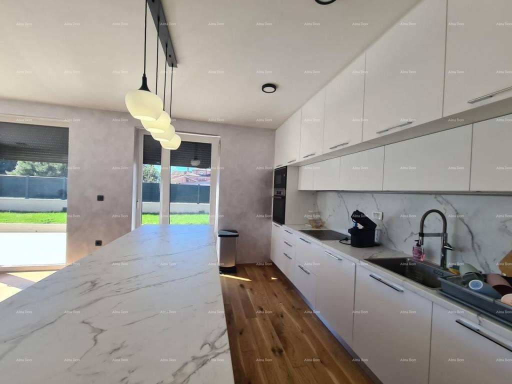 Geräumige, moderne Küche mit Speisekammer Helles und luftiges Wohnzimmer mit Zugang zur Terrasse und Pool Badezimmer im Erdgeschoss Waschraum mit Ausgang zum Garten