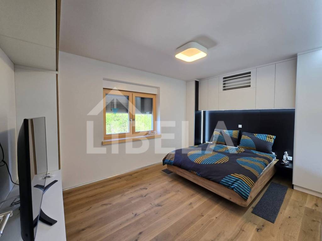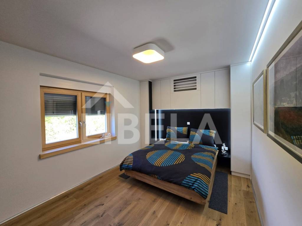 Nepremičnina je zgrajena iz visokokakovostnih materialov, popolnoma opremljena in pripravljena za uporabo. Poseben poudarek je na velikih steklenih površinah, odprtih bivalnih prostorih, naravni svetlobi, udobju in skrbno urejeni zunanjosti.