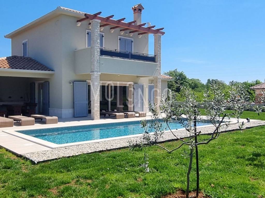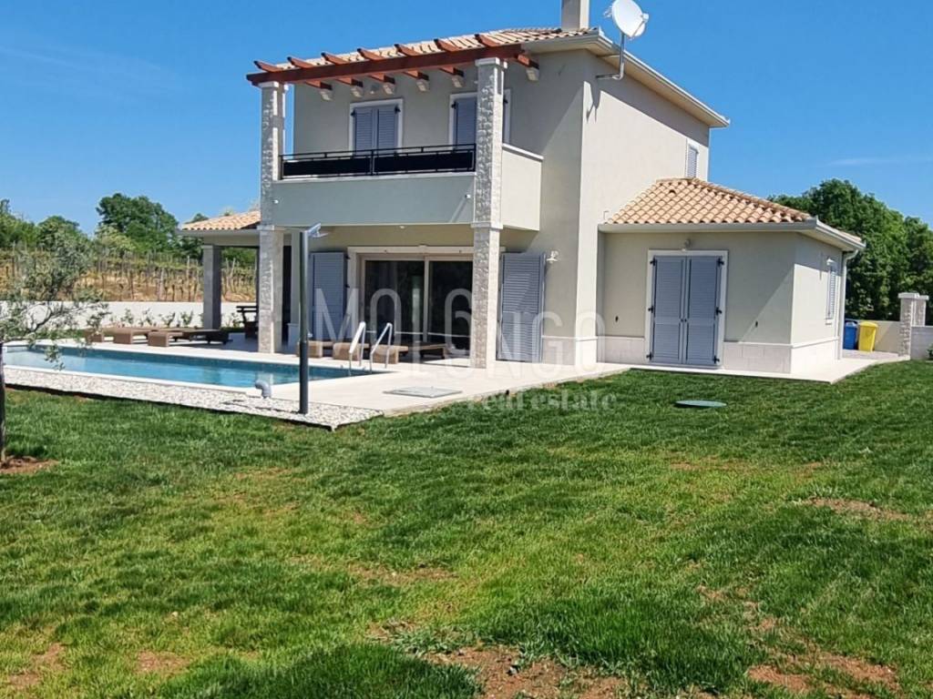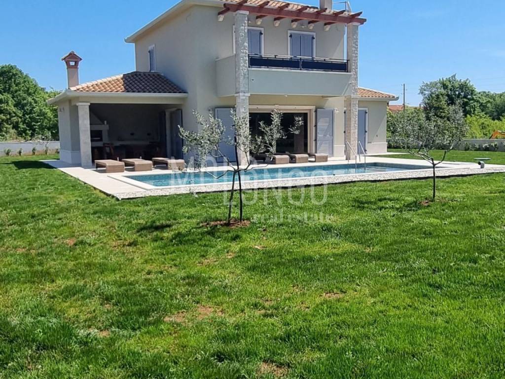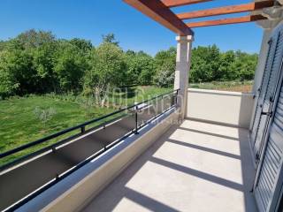 Im ersten Stock befinden sich zwei weitere Schlafzimmer, zwei davon mit Zugang zu einer überdachten Terrasse mit Panoramablick, zwei Badezimmer, ein Flur und ein Abstellraum.