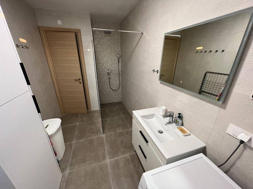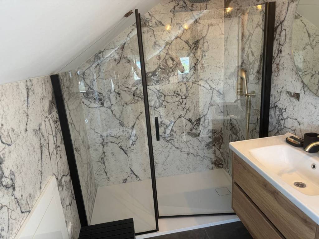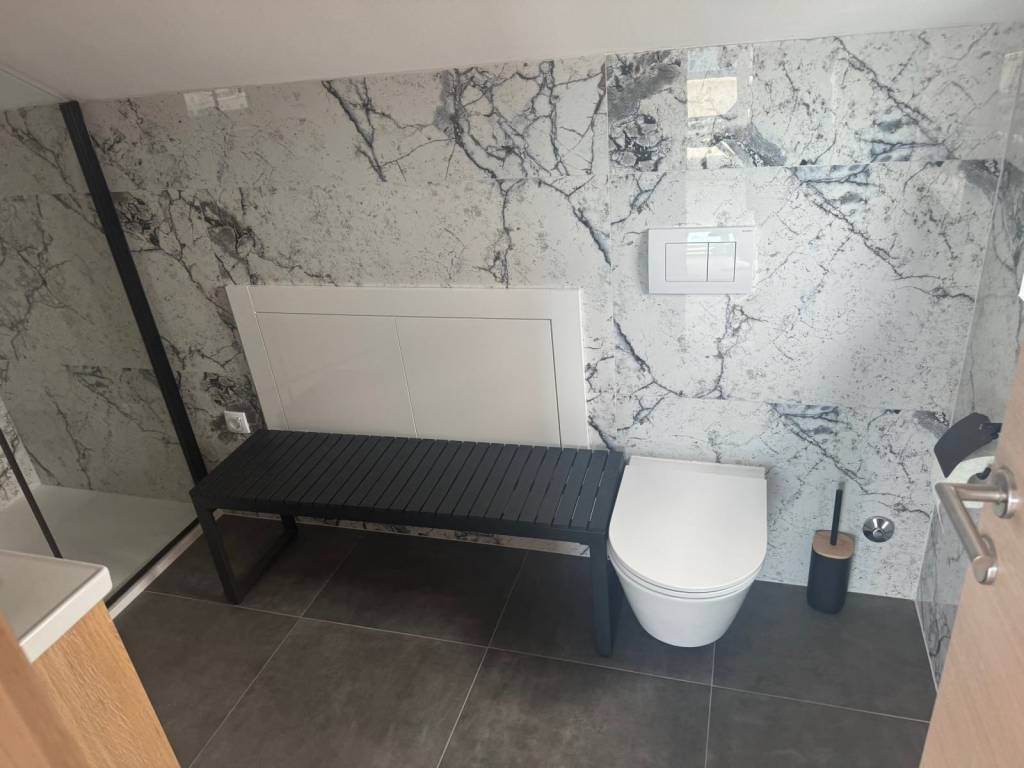 Zwei elegante Bäder mit hochwertigen Sanitäranlagen, Fußbodenheizung und modernen Oberflächen