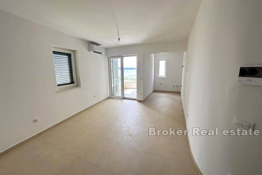 Zum Verkauf steht eine geräumige Wohnung von 130 m2 in der Nähe von Zadar.  Die Wohnung befindet sich auf einem Grundstück von 450 m2 und liegt in der dritten Reihe zum Meer, nur 40 Meter vom ersten Strand entfernt.  Es besteht aus zwei Etagen, wobei sich die Küche, das Esszimmer, das Wohnzimmer und die Gästetoilette im Erdgeschoss befinden. Vom Wohnzimmer gibt es einen Ausgang zum Balkon. Eine interne Wendeltreppe führt in die obere Etage, wo sich drei Schlafzimmer und ein Gemeinschaftsbad befinden.  Es ist zu beachten, dass eines der Schlafzimmer über ein eigenes Badezimmer verfügt. Die Bewohner der Wohnung haben Zugang zu einer großzügigen Terrasse von 80 m2, ausgestattet mit Whirlpool-Anschlüssen, die vom Gemeinschaftsbereich und zwei Zimmern aus zugänglich ist. Die Wohnung befindet sich in einem 2020 erbauten Gebäude und verfügt über zwei Parkplätze.  Der große Vorteil dieser Immobilie ist Privatsphäre und Ruhe, da sie in einer Sackgasse mit direktem Zugang zu einem kleinen Strand liegt, umgeben von nur zwei anderen Immobilien. Die Wohnung ist gut an die Hauptstraßen und die Autobahn sowie an Supermärkte und andere notwendige Annehmlichkeiten angebunden.  Das Zentrum von Zadar ist nur 10 Kilometer von der Immobilie entfernt.