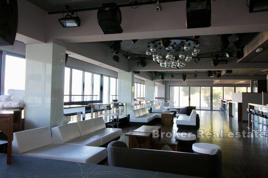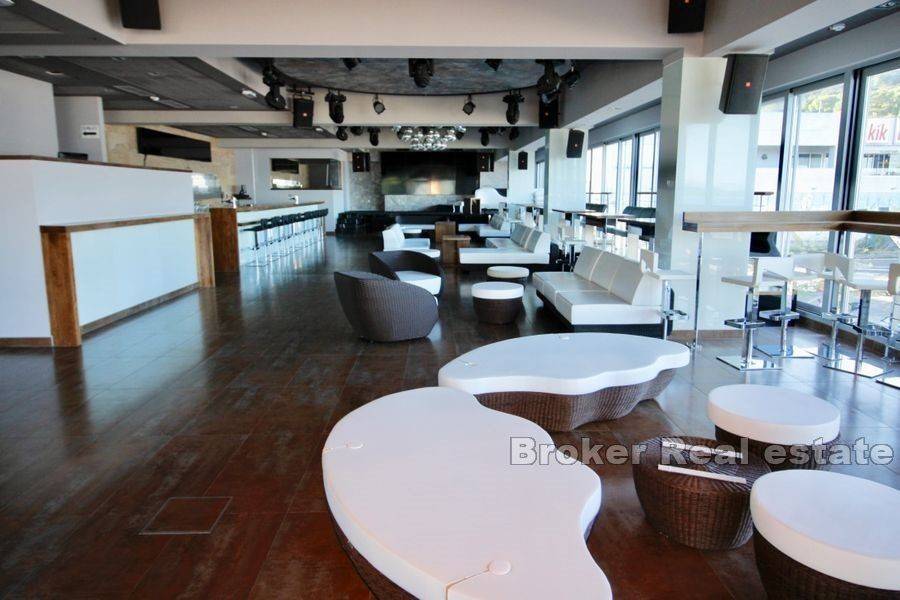 Geschäftsfläche von 432 m2 im ersten Stock eines Bürogebäudes in der ersten Reihe zum Meer auf Hvar. Der ausgestattete Raum wird als Nachtclub genutzt und besteht aus 353 m2 geschlossener verglaster Fläche, zwei Bars zum Zubereiten und Servieren von Getränken und einer erhöhten Bühne. Es hat eine überdachte Terrasse von 79,44 m2 mit einer Bar im Freien. Im hinteren Teil des Raumes befinden sich Abstellräume und eine Garderobe. In Anbetracht der häufigen Lage am Meer und der Ausstattung ist der Platz eine rentable Investition. Durch einen Aufzug mit dem Geschäftsraum im Erdgeschoss verbunden, der ebenfalls zum Verkauf steht, mehr Informationen unter Ref. Nummer 5226/30.
