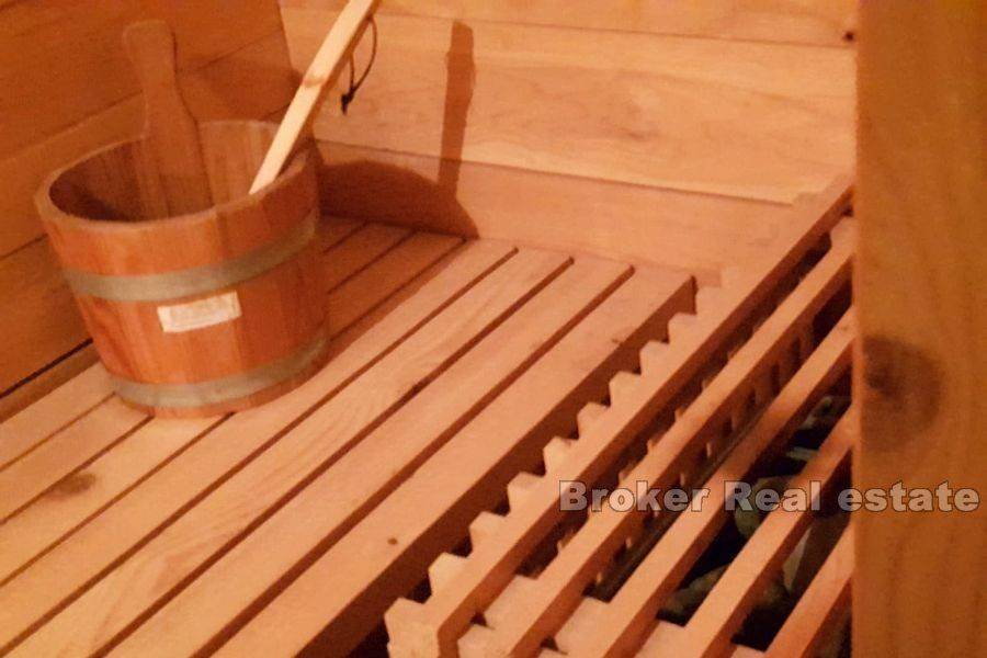 Wunderschön eingerichtete und vom Designer eingerichtete 75 m² große Wohnung im zweiten Stock eines kleineren Steinhauses. Die Wohnung ist komplett renoviert, nach Süden ausgerichtet und besteht aus einem Eingangsbereich, einem großen Wohnzimmer mit Küche und Esszimmer, einem Zimmer, einer Sauna und einem Balkon. Die Wohnung bietet einen Blick auf das Meer und die Dächer der Altstadt von Split. Universelles Eigentum, das sowohl für den Lebensunterhalt als auch für den Tourismus genutzt werden kann.