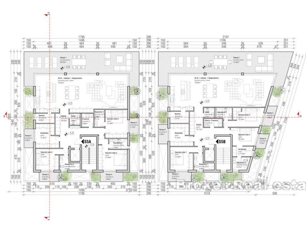 Eine geräumige Dreizimmerwohnung in der ersten Reihe zum Meer in Čiovo, nur wenige Meter vom Kiesstrand entfernt. Die Wohnung befindet sich im zweiten Stock des Gebäudes und verfügt über eine Fläche von 253 m2 und direkten Aufzugszugang von der gemeinsamen Tiefgarage. Neben der Garage gibt es auch einen großen Gemeinschaftspool, großzügige sonnige Terrassen und angenehme Essbereiche im Freien. Das gesamte Grundstück ist voller angelegter Grünflächen hinter und neben beiden Gebäuden. In unmittelbarer Nähe befinden sich gepflegte Kiesstrände, Strandbars sowie Sportplätze. Das Ortszentrum mit Geschäften und Restaurants ist nur ca. 300 Meter entfernt. Der Flughafen Split ist etwa 15 Autominuten entfernt. Die Lage ist ideal für diejenigen, die eine ruhige Umgebung suchen, gleichzeitig aber in der Nähe der städtischen Einrichtungen sein und alle Annehmlichkeiten genießen möchten, die die Region zu bieten hat. Es handelt sich um eine Immobilie, die eine hervorragende Investition darstellt, sei es als ruhiger Wohnort oder als Investition in die Tourismusbranche. Auf Wunsch kann die Wohnung komplett ausgestattet und möbliert werden und eine professionelle Instandhaltung des Gebäudes nach dem Bau sorgt für den Werterhalt der Investition. In den ersten beiden Etagen desselben Gebäudes stehen unter der Agenturkennung 2029/88 Zweizimmerwohnungen zur Verfügung. Im Nachbargebäude stehen auch Wohnungen zum Verkauf, Codes: 2029/90, 2029/91.