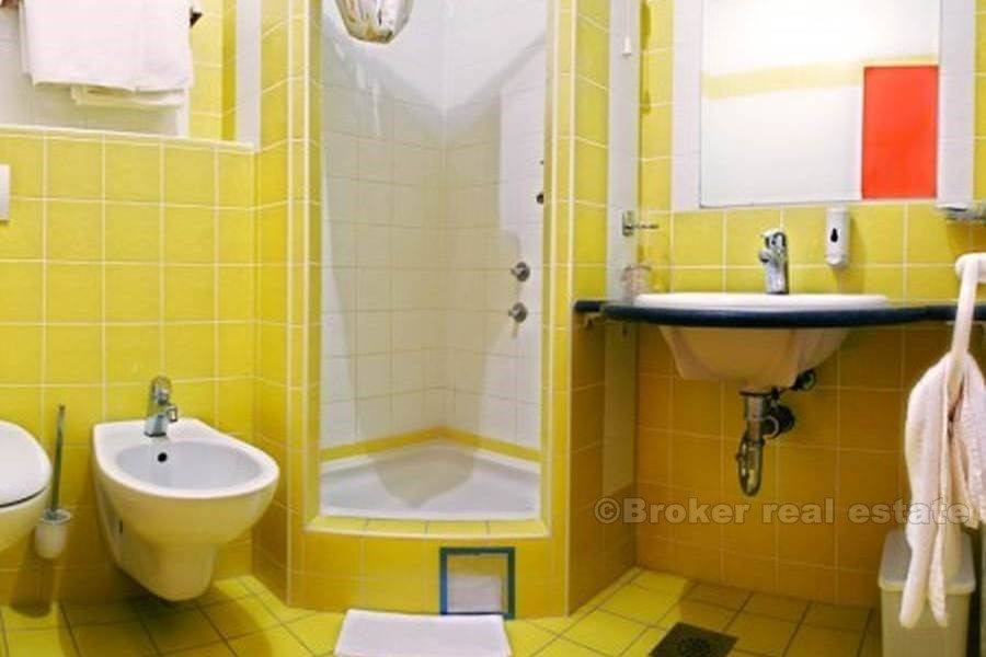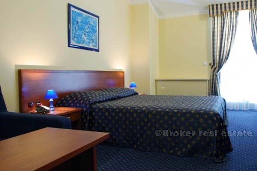 Dies ist ein ruhiges Familienhotel direkt am Strand gelegen, direkt am Meer, im Zentrum eines kleinen dalmatinischen Dorfes, zwischen Omis und Split (14 km südlich von Split). Das Hotel besteht aus 4 Stockwerken. Im Erdgeschoss gibt es eine Kaffee-Bar mit 15 Sitzplätzen, eine Terrasse vor dem Hotel mit 30 Plätzen, eine komplett ausgestattete Küche, ein Restaurant mit 60 Plätzen, ein Lagerraum für Lebensmittel und Getränke und ein Heizraum. auf der ersten, zweiten und dritten Stock sind die Räume. Das Hotel bietet einen kompletten Service von Unterkunft in Einzelzimmern, Doppelzimmern und Dreibettzimmern, alle mit Meerblick und eigenem a la carte Restaurant. Es gibt 17 Zimmer insgesamt. Alle Zimmer sind klimatisiert, und ausgestattet mit SAT-TV, Minibar, Direktwahl-Telefon, WLAN-Internetzugang im gesamten Hotel. Das Hotel wurde 2004 erbaut und verfügt über alle notwendigen Unterlagen.