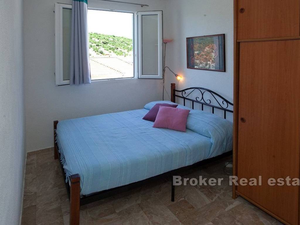 Das Haus befindet sich in zweiter Reihe vom Meer, in einer ruhigen Bucht mit wunderschönem Strand, Wohnfläche von 315 m² auf einem Grundstück von 322 m². Es ist von mediterranen Pflanzen umgeben, was eine ideale Atmosphäre zum Entspannen und Genießen der Natur schafft. Die Terrasse bietet einen wunderschönen, offenen Panoramablick auf das Meer, was seine Attraktivität weiter erhöht. Der Keller von 33 m² bietet zusätzlichen Platz für Lager oder andere Nutzungen. Es befindet sich im Erdgeschoss Wohnung mit zwei Schlafzimmern, Wohnzimmer, Küche und Esszimmer und Terrasse mit Meerblick. Im ersten Stock befindet sich eine geräumige Wohnung mit drei Schlafzimmern, zwei Bädern, einer Küche, einem Esszimmer und einem Wohnzimmer mit Zugang zu einer Terrasse mit Panoramablick. Im zweiten Stock befindet sich eine Wohnung mit zwei Zimmern, Toilette, Badezimmer, Küche und Wohnzimmer und drei Terrassen mit wunderschöner Aussicht. Das Haus verfügt außerdem über ein Nebengebäude in Rohbau, das eine Küche, ein Wohnzimmer, ein Badezimmer und eine Galerie enthält, die für ein Schlafzimmer vorgesehen ist. Diese Anlage bietet die Möglichkeit des Zukaufs und der Erweiterung. Zu den weiteren Annehmlichkeiten dieser Immobilie gehören zwei Bootsliegeplätze, was für Bootsliebhaber ein großer Vorteil ist. Das Haus ist voll klimatisiert, was in den Sommermonaten für Komfort sorgt. Es gibt zwei Parkplätze neben dem Haus und ein zusätzliches Grundstück von 100 m², auf dem bis zu 8 Autos Platz finden. Das Haus ist bereits für touristische Zwecke vermietet und hat eine ausgezeichnete Auslastung, was eine hervorragende Gelegenheit darstellt, die Investition zurückzuzahlen. Diese Immobilie ist ideal für Menschen, die einen ruhigen Urlaubsort suchen, aber auch für diejenigen, die in den Tourismus investieren möchten. Mit seinen Bootsliegeplätzen, dem Panoramablick auf das Meer, den klimatisierten Apartments und der Nähe zum Strand bietet es alles, was Sie für einen luxuriösen Aufenthalt im wunderschönen mediterranen Klima benötigen.