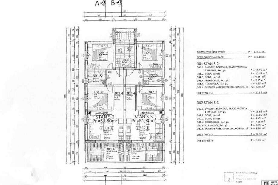 Apartman se sastoji od predsoblja, dnevnog boravka, kuhinje, blagovaonice, kupaonice s wc-om, dvije spavaće sobe, natkrivenog balkona i parkirnog mjesta.