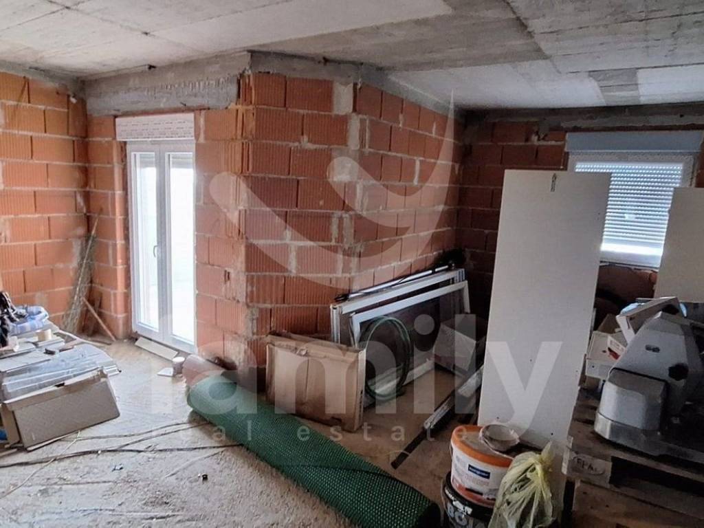 Nicht weit von der wunderschönen Südwestküste der Halbinsel Istrien entfernt liegt die Stadt Vodnjan, eine Stadt, die reich an historischem Erbe und Kultur ist und wunderschön gelegen ist und über einen wunderschönen Altstadtkern verfügt. Das alte Stadtzentrum und die meisten grundlegenden Annehmlichkeiten in Vodnjan liegen auf einem wunderschönen Hügel, der einen wunderschönen Blick auf das Meer und die Brijuni-Inseln bietet.Direkt in Vodnjan, unweit des Zentrums und in hervorragender Lage befindet sich dieses großzügige Apartmenthaus mit insgesamt 4 Wohnungen und Nebenräumen von 450 m2. Es erstreckt sich über 3 Etagen, während der Hof etwa 500 m2 groß ist. Im Erdgeschoss befindet sich ein geräumiger Raum von ca. 40 m2, der derzeit als Wasch- und Bügelraum genutzt wird, während sich daneben eine Taverne mit Holzofen und Küchenbereich befindet und darunter eine Wohnung mit insgesamt 100 m² bestehend aus zwei Schlafzimmern und einem Badezimmer. Mit dalmatinischem Stein ausgekleidete Innentreppen führen in den ersten Stock und zu einer geräumigen Wohnung in der Rohbauphase von ca. 120 m2 mit installierter PVC-Tischlerei und bieten Platz für 3 bis 4 Schlafzimmer, zwei bis drei Badezimmer, ein Wohnzimmer mit Essbereich und ein Badezimmer Küche und einer vorhandenen großzügigen Terrasse.